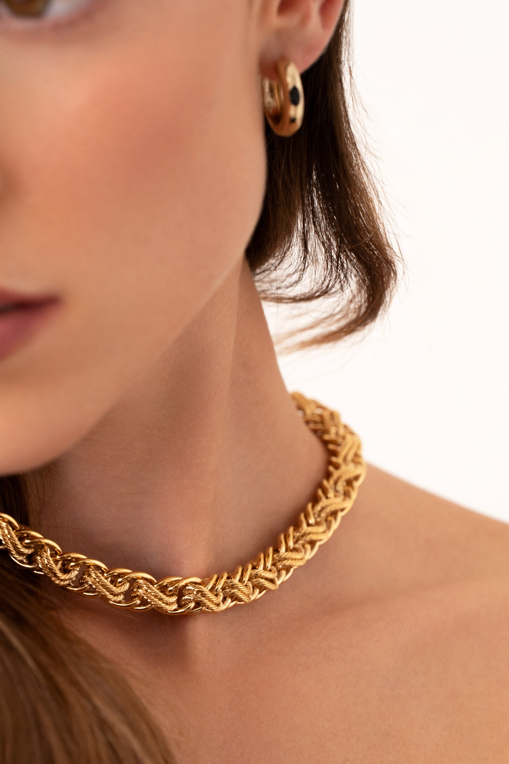 gros collier ras de cou  doré hyper tendance oversize retro vintage maillons torsadé doré frida