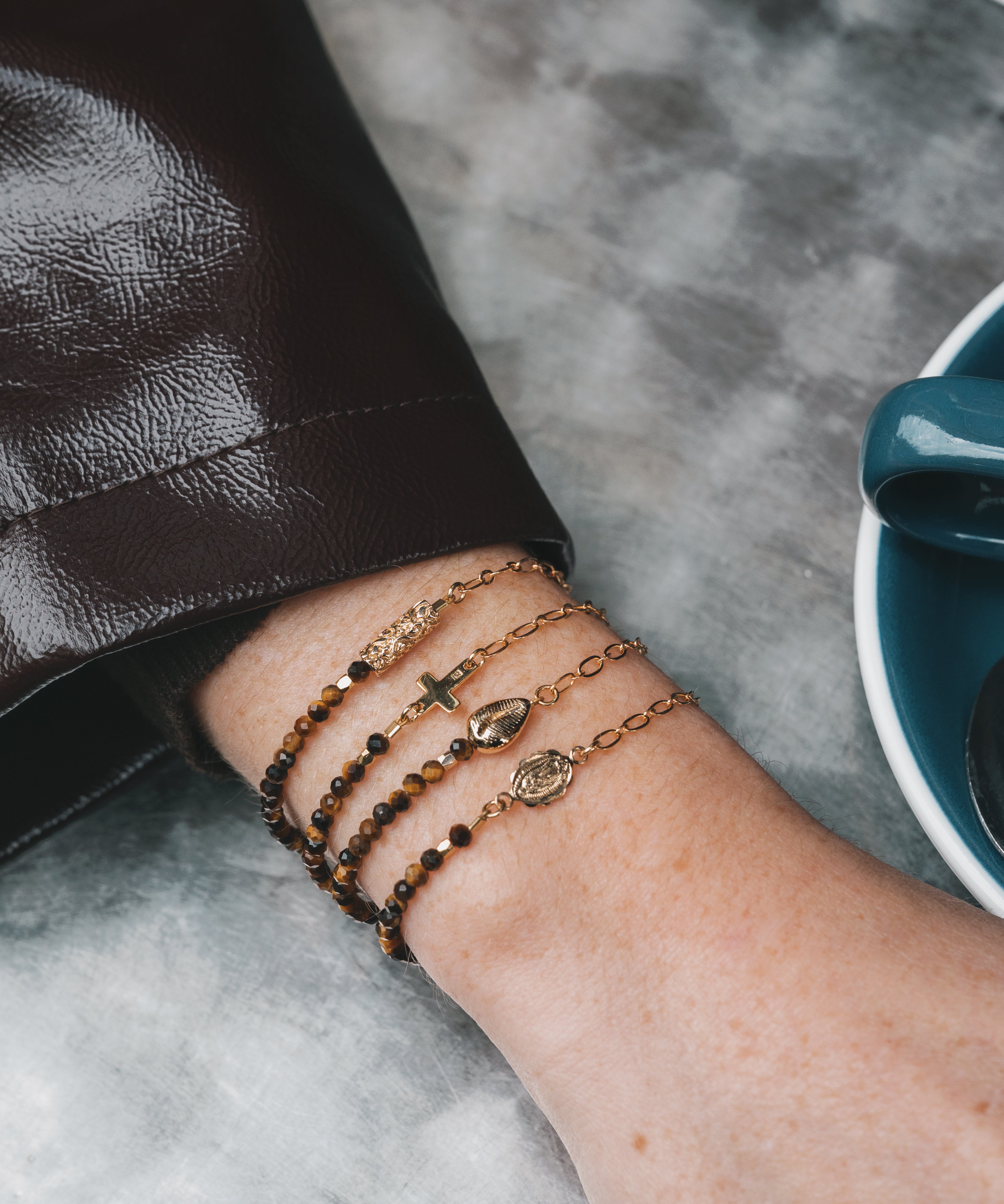 bracelet réglable chainette de rallonge fanette réglable perle bleu majorel délicat chaine rosaire plaqué or doré poétique fin excellent rapport qualité prix