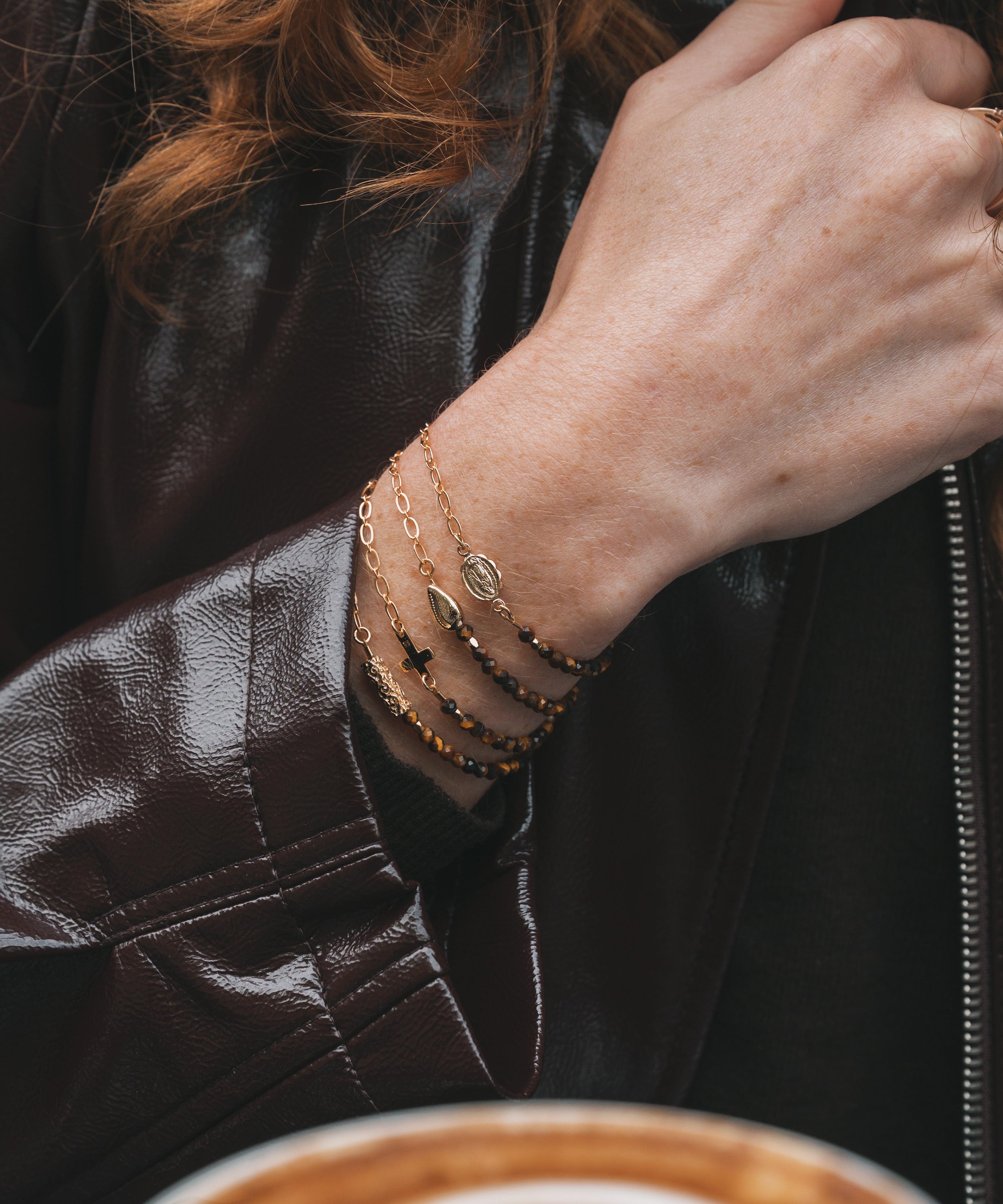 bracelet réglable chainette de rallonge fanette réglable perle noir délicat chaine rosaire plaqué or doré poétique fin excellent rapport qualité prix