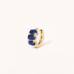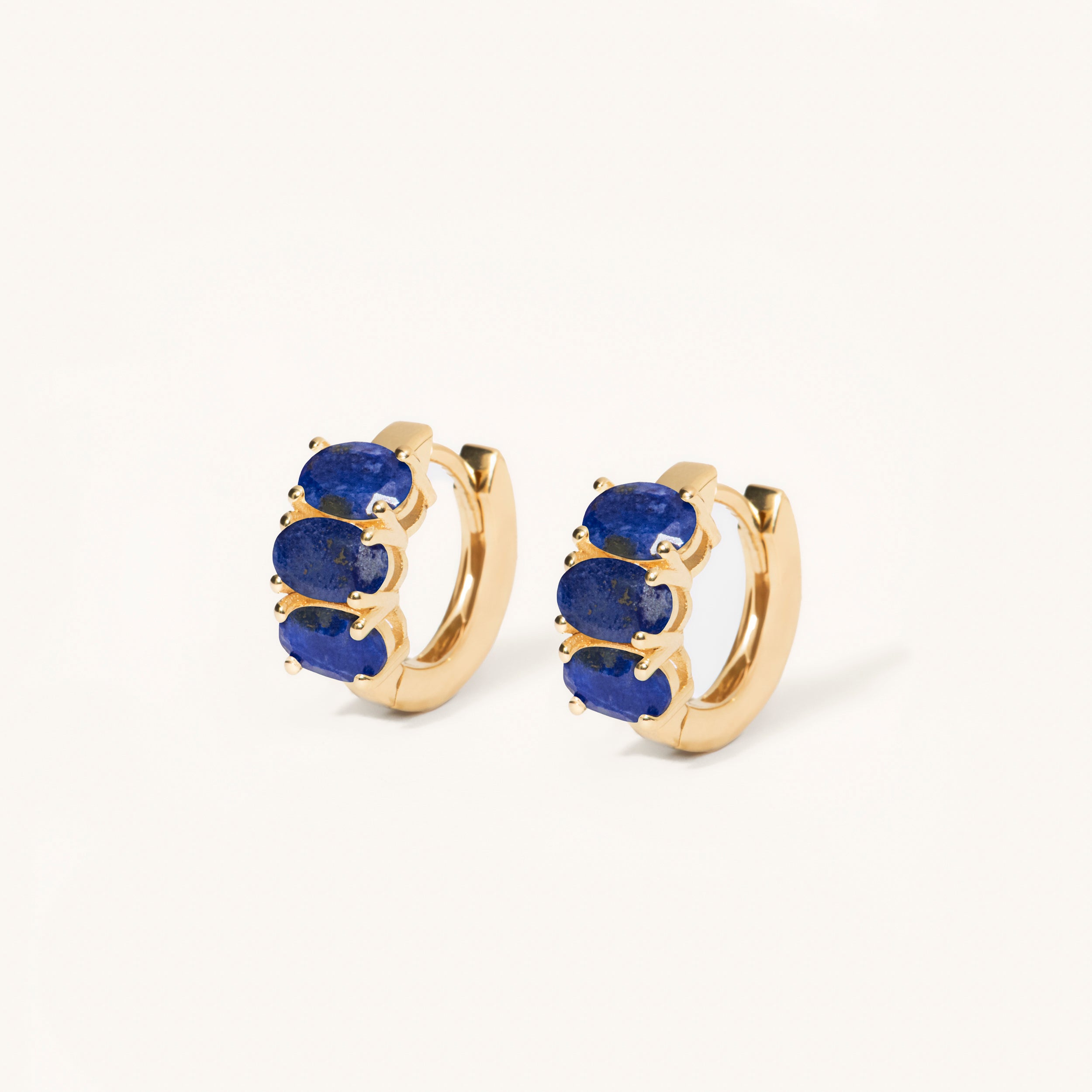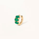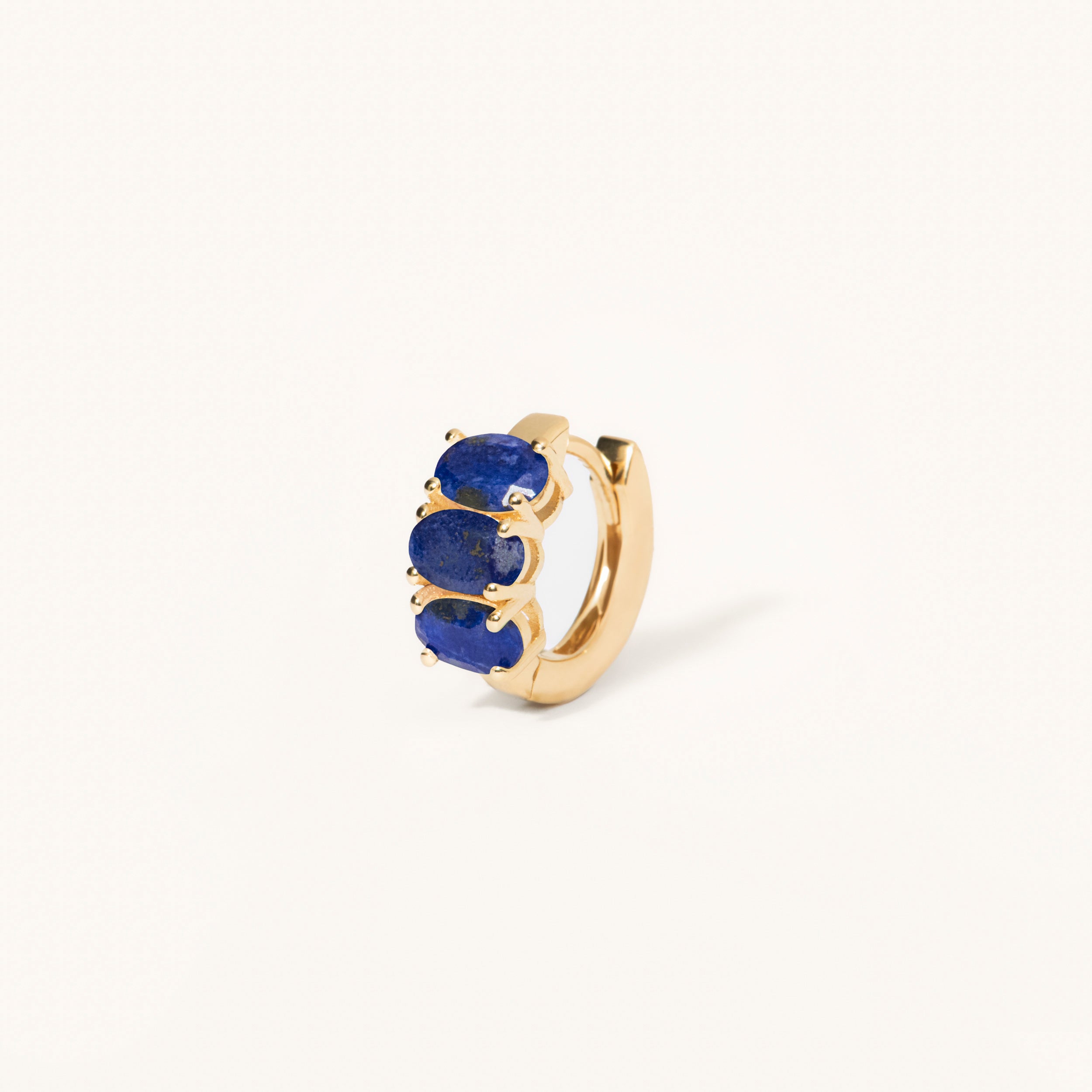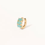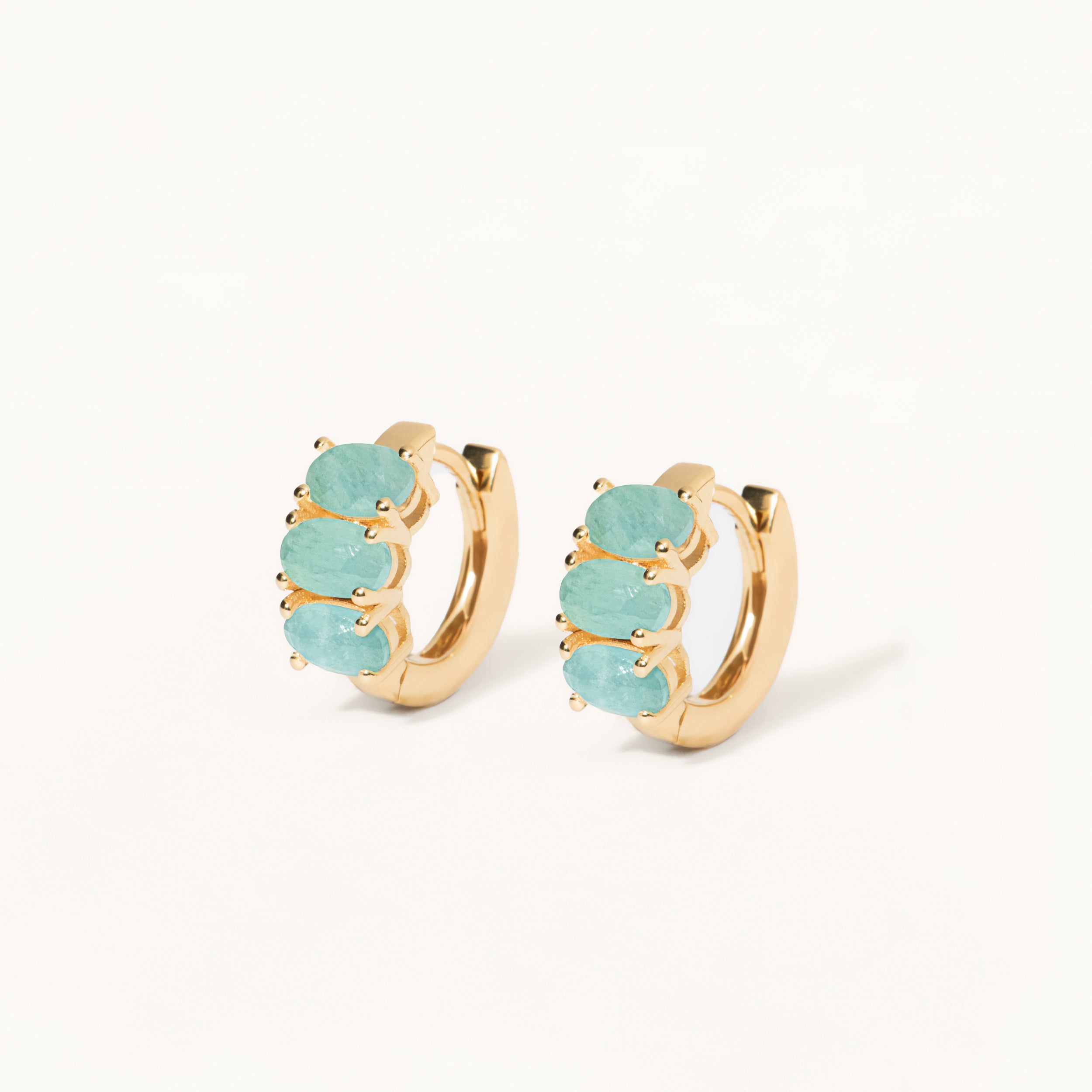 Orphée bijoux boucle d'oreilles créoles dorées à fermoir clicker de 10 mm serties de 3 pierres fines ovales facettées en labradorite, onyx vert, onyx noir, amazonite et pierre de lune, le tout en plaqué or 3 microns 750/1000. Cette boucle d'oreille peut se porter seule, en stacking ou à la paire