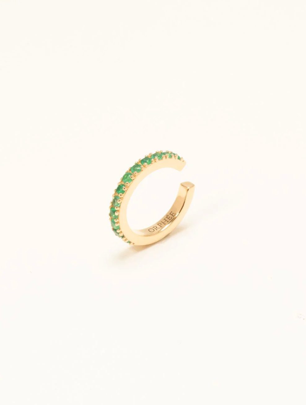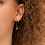 orphée bijoux, mini créole 2 clickers relié par une chainette, sertis de pierres fines et zircons naturels, onyx noir, onyx vert et labradorite. vendue à l'unité