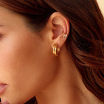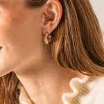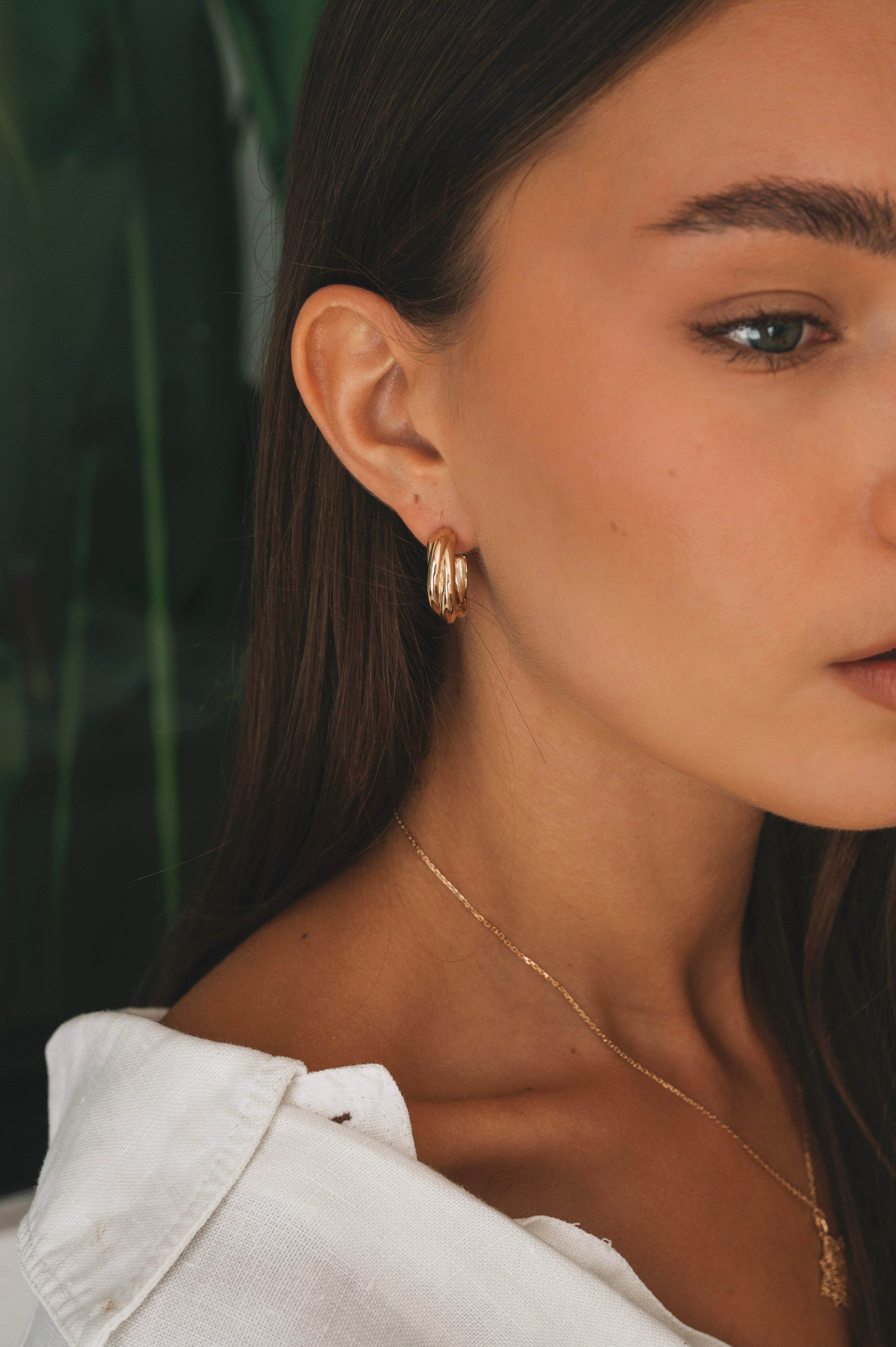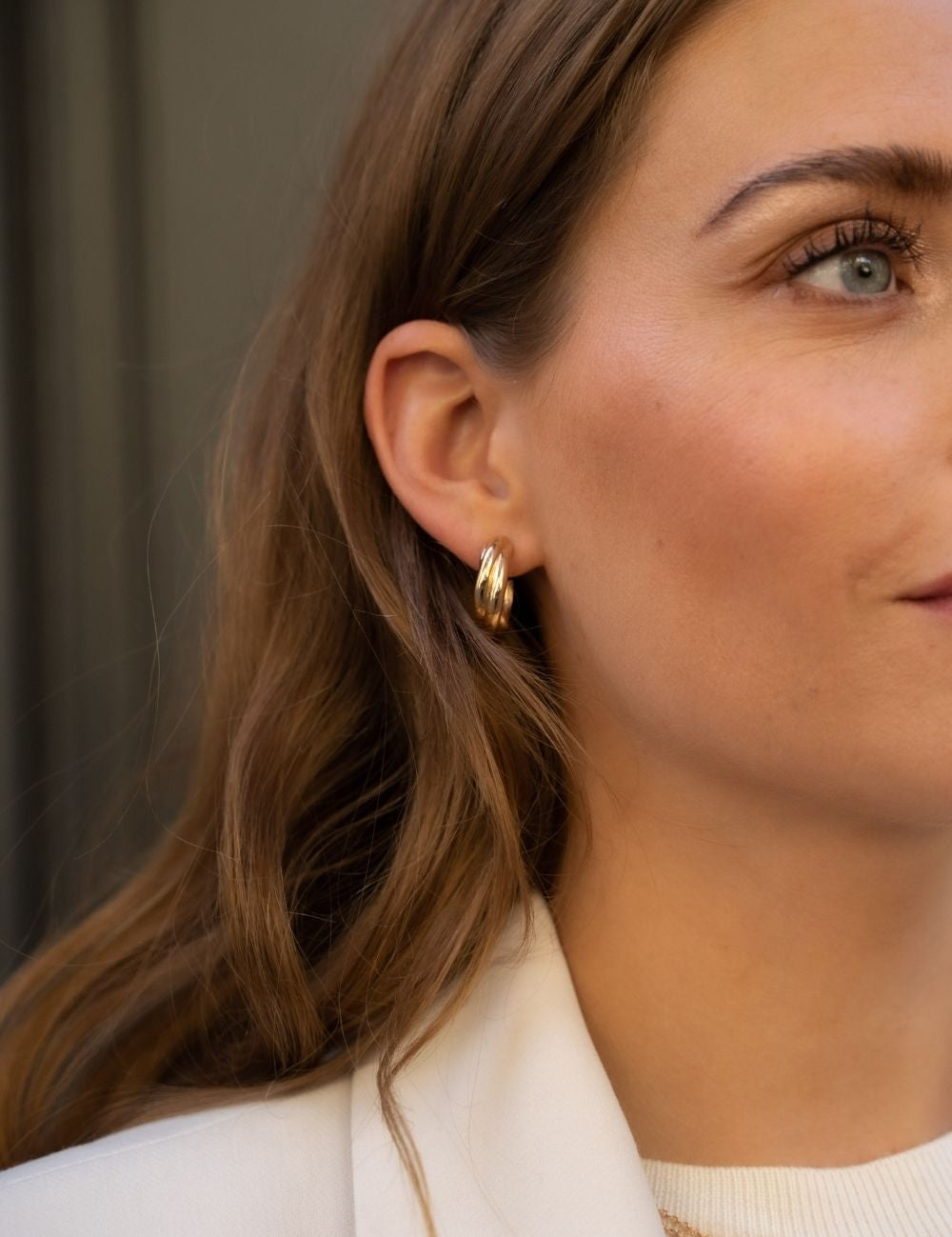 photo oreille boucle d'oreille créole torsade or bonne proportion retro vintage facile à porter légere canon