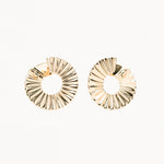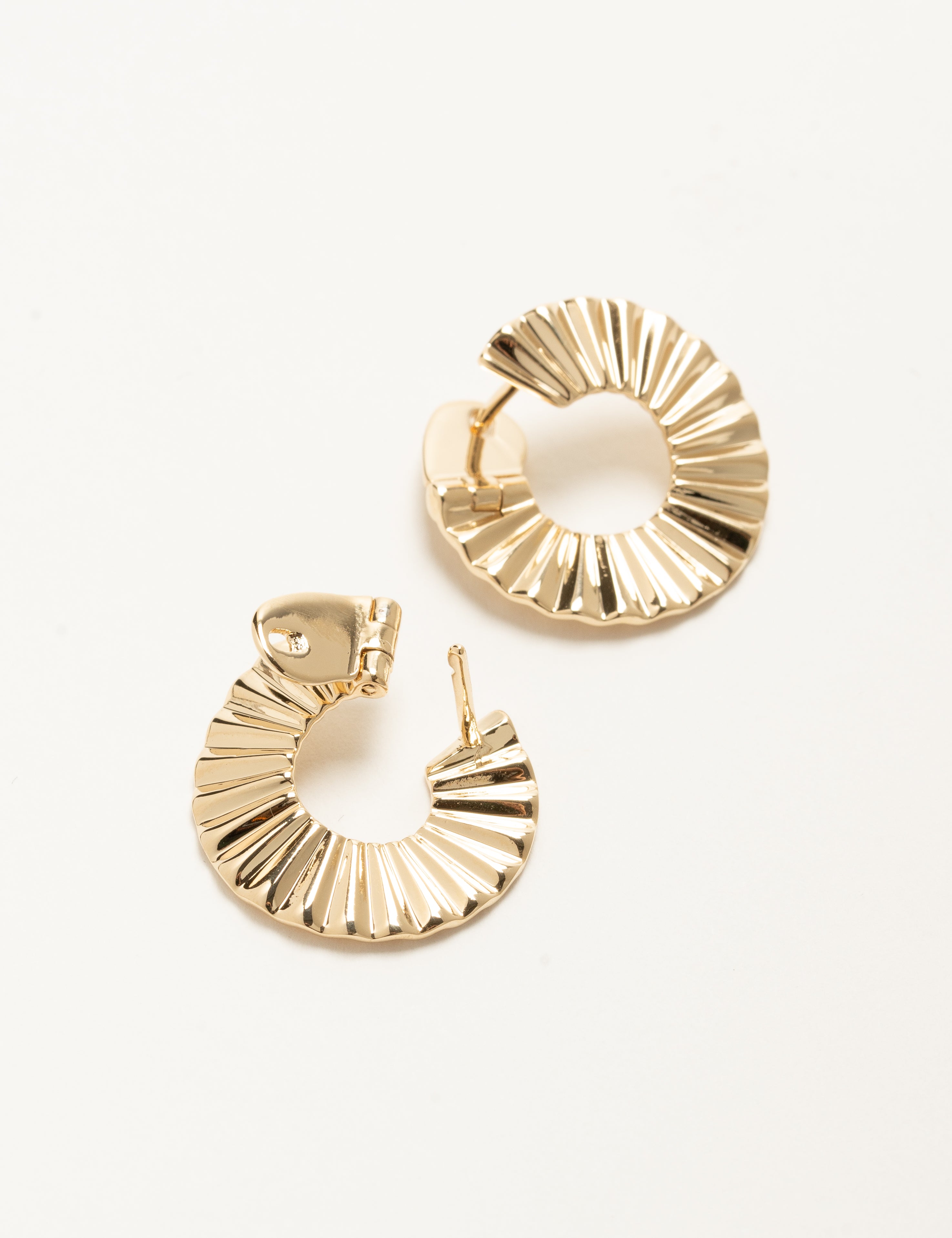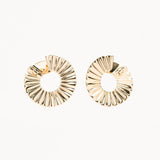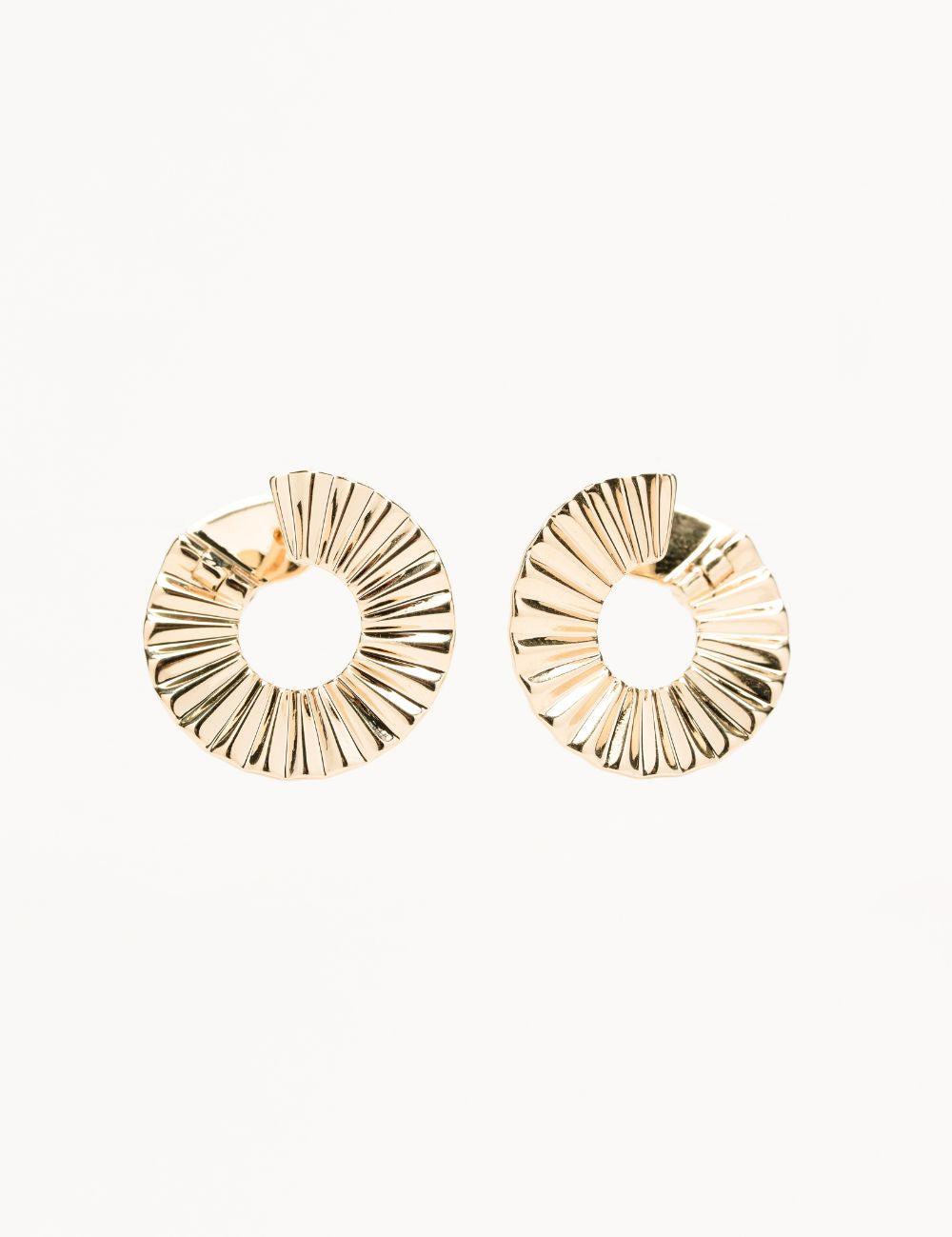 boucles d'oreilles tailles parfaites à porter au quotidien originales rondes dorées striées reflétant la lumière fleur pétale cadeau parfait bo mariée soleil bo lumineuse lumière solaire