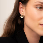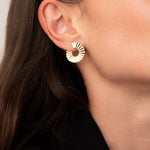 boucles d'oreilles originales rondes dorées striées reflétant la lumière fleur pétale cadeau parfait bo mariée soleil bo lumineuse lumière solaire