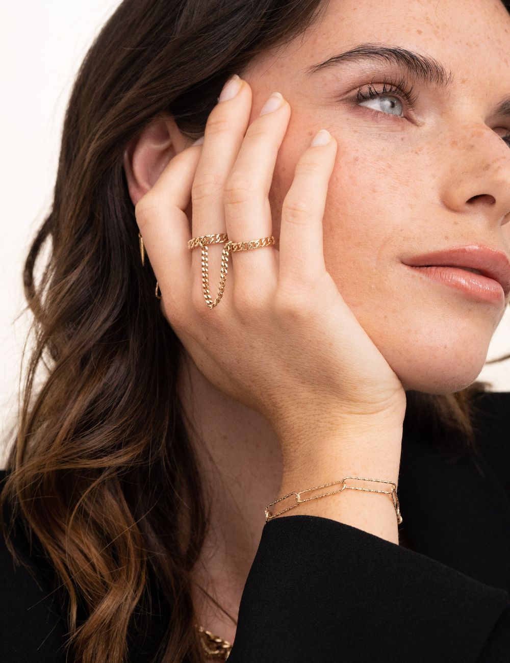 Discover the Alix bracelet. A delicately hammered trombone link equipped with an extension chain making it adjustable to all wrists (a successful gift idea, no sizing problem).