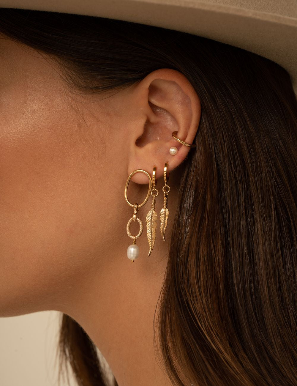Orphée bijoux boucles d'oreilles mini créole dotée d'une plume de 20 mm, le tout en plaqué or 3 microns, à porter seule ou en stacking