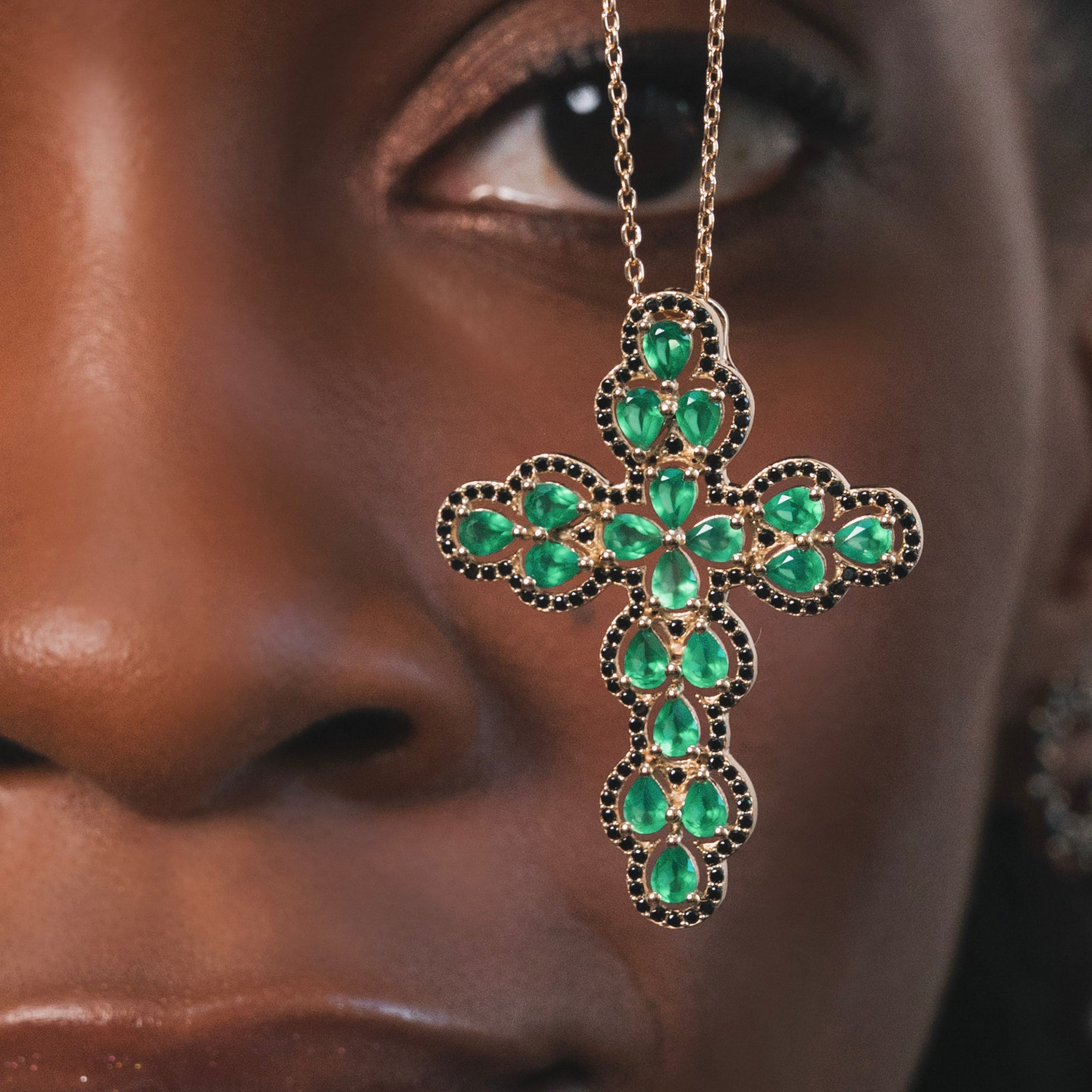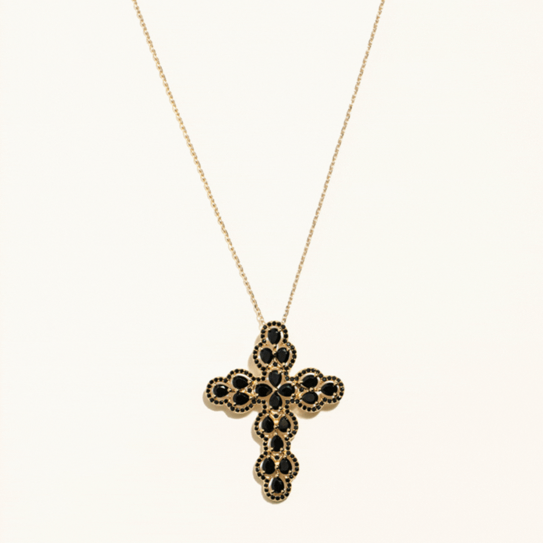 Sublimez votre allure avec le collier "Joséphine", un bijou raffiné qui marie élégance intemporelle et éclat précieux. Ce collier se décline en quatre versions, chacune ornée d’une croix sertie de pierres précieuses finement taillées. Montée sur une délicate chaîne dorée, chaque croix est façonnée dans un style baroque chic, mettant en valeur le jeu de lumière des pierres.