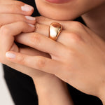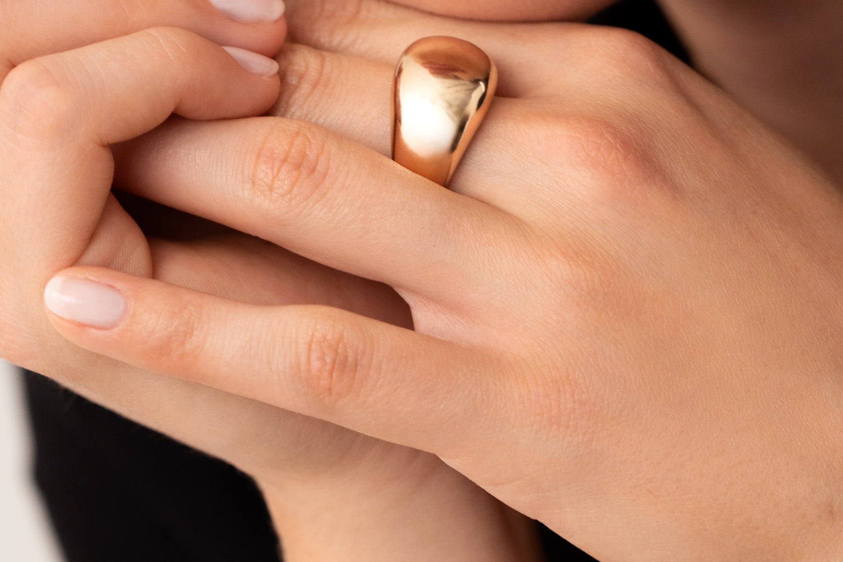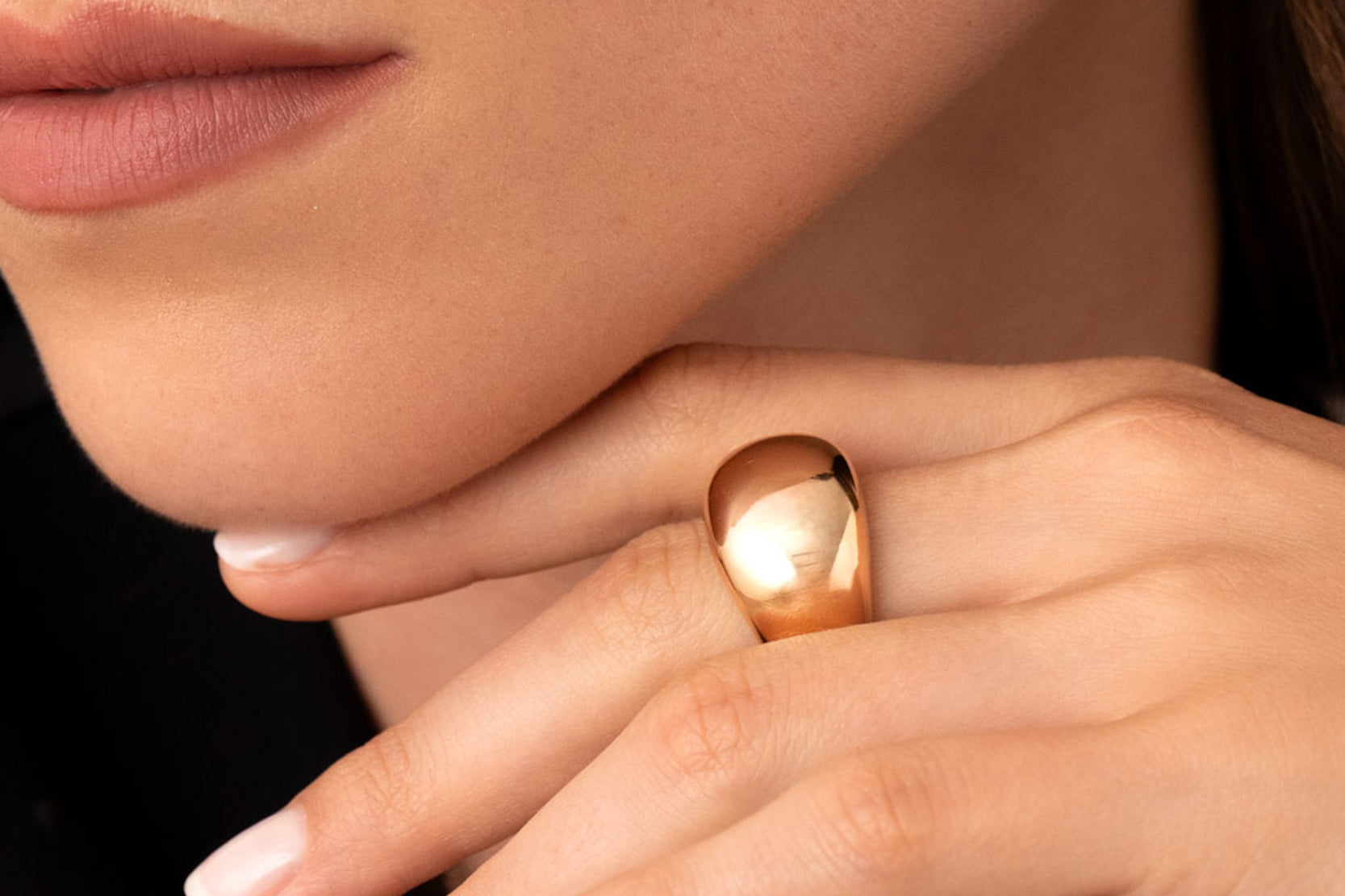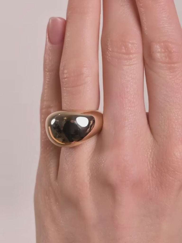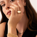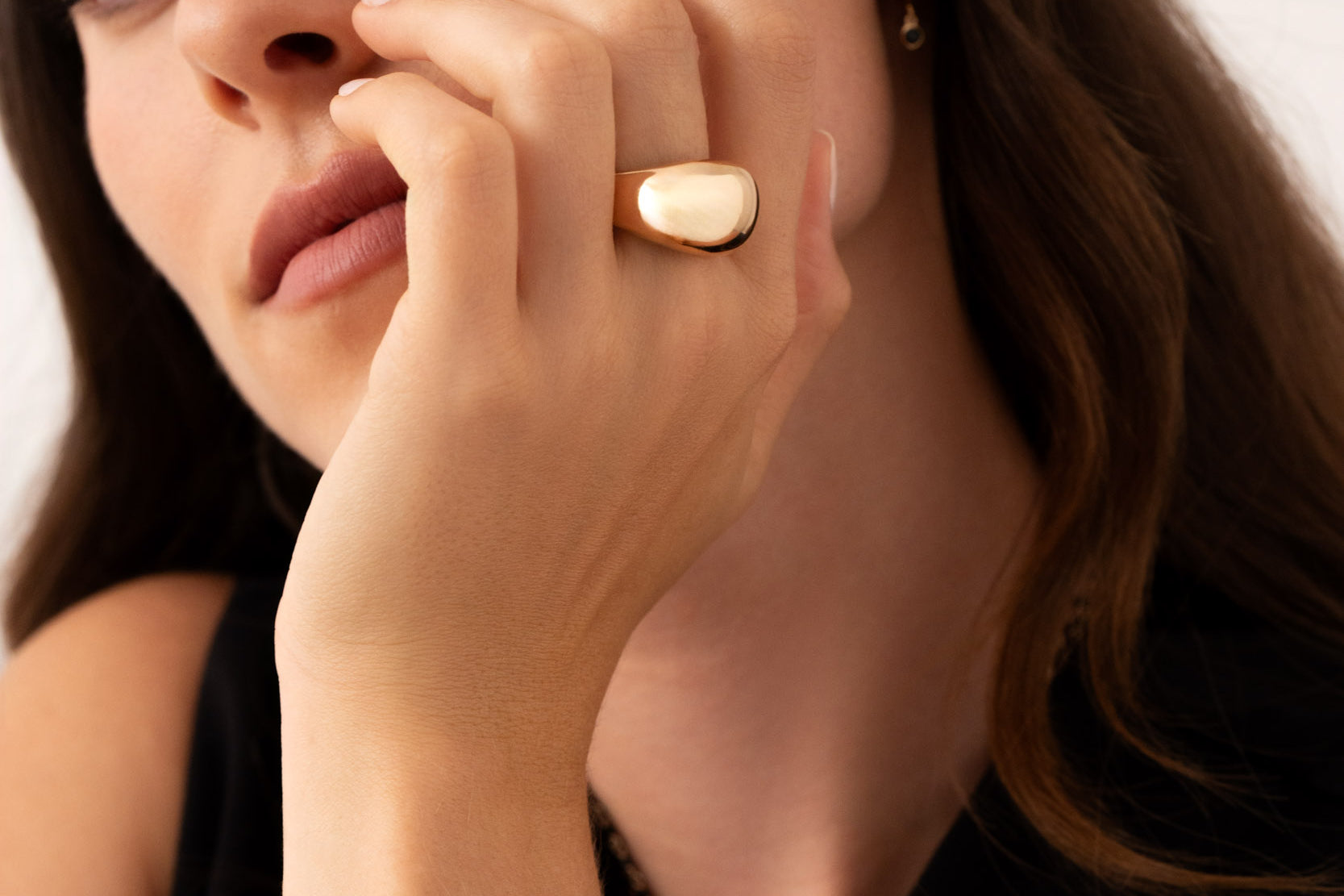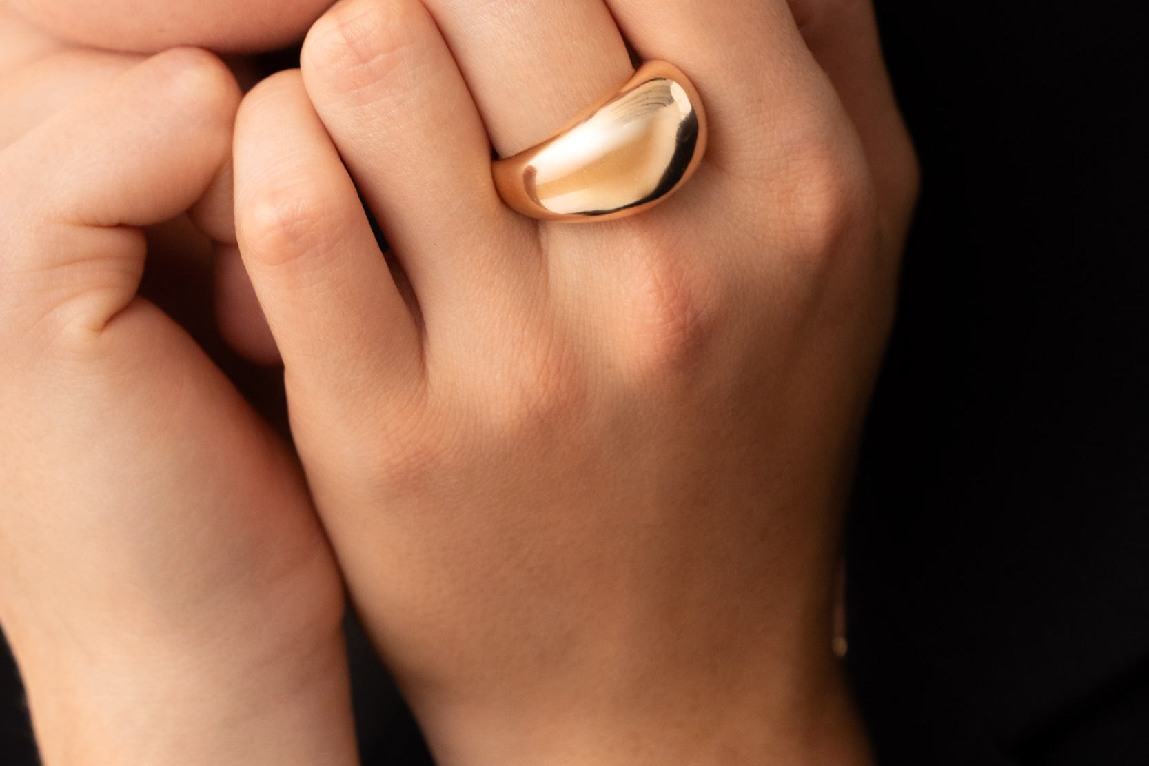 Après des mois et des mois d'allers retours d'échantillonnage non satisfaisants, elle a enfin abouti pour être THE bague dorée oversize la plus parfaite du marché, tout en étant ultra confortable.