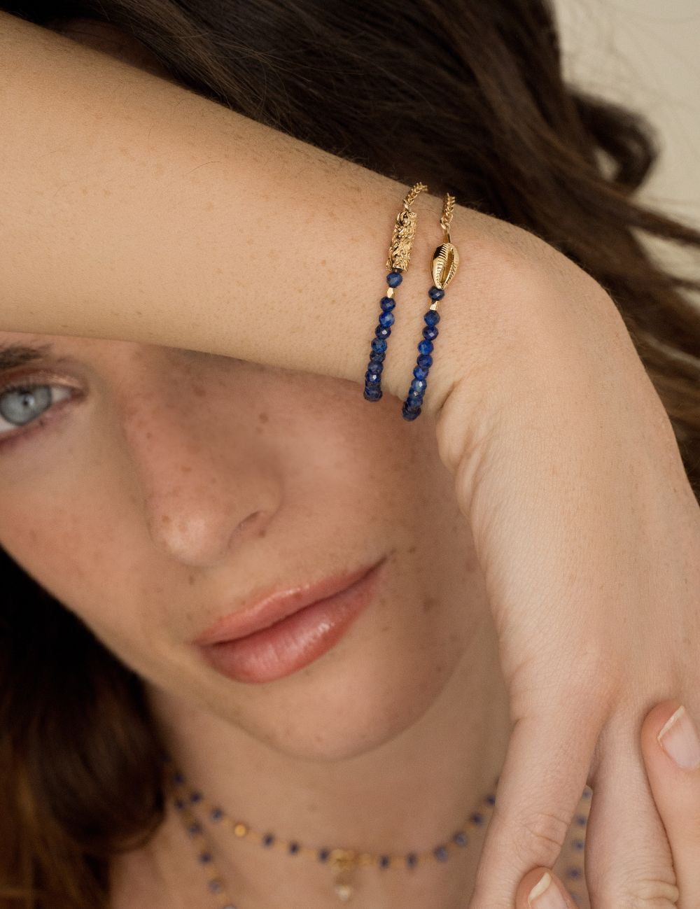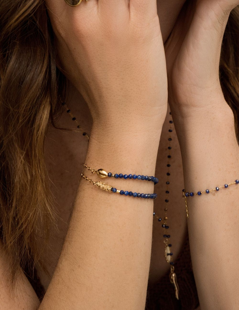 bracelet rachel réglable perle bleu lapis lazuli coquillage cauri tube balinais