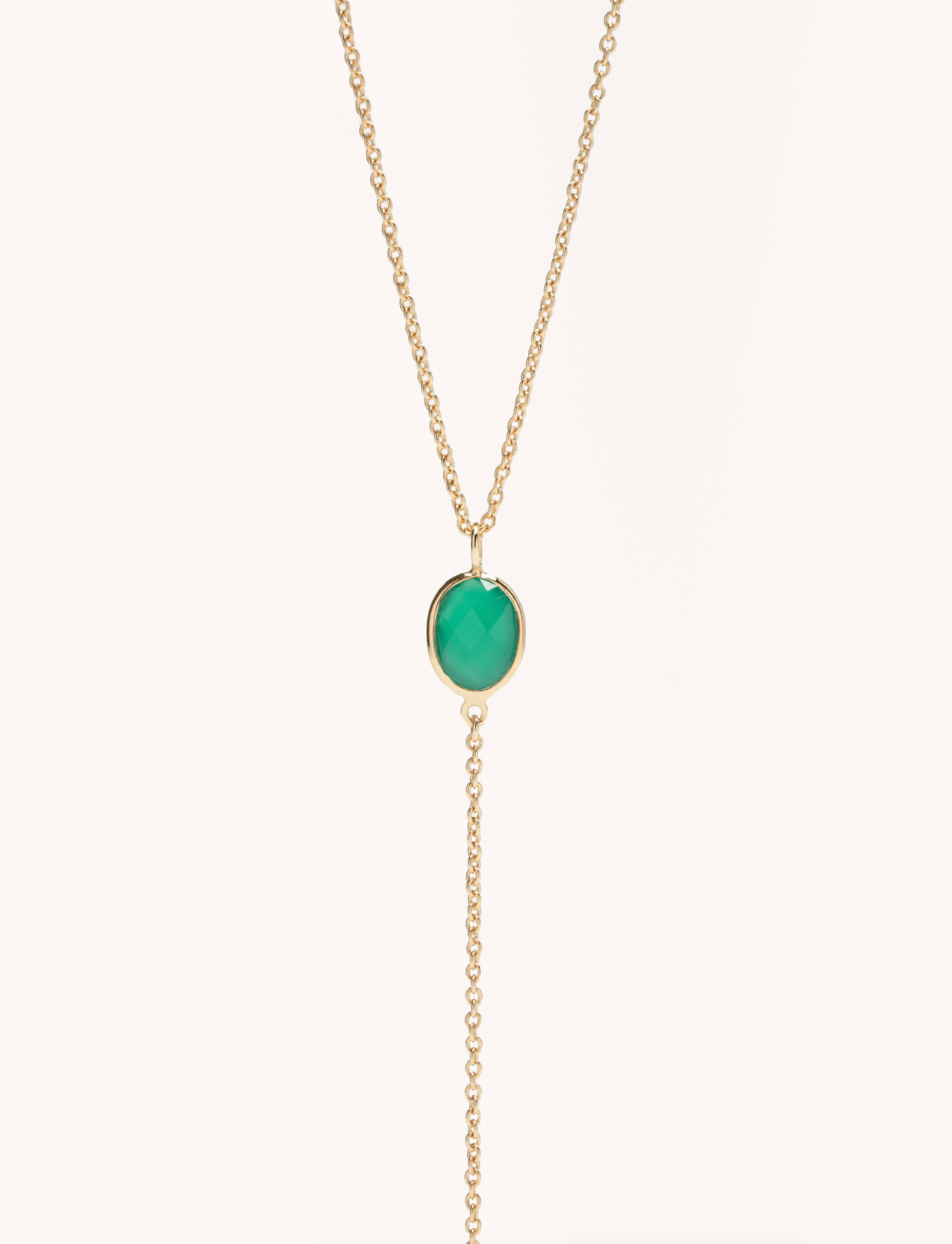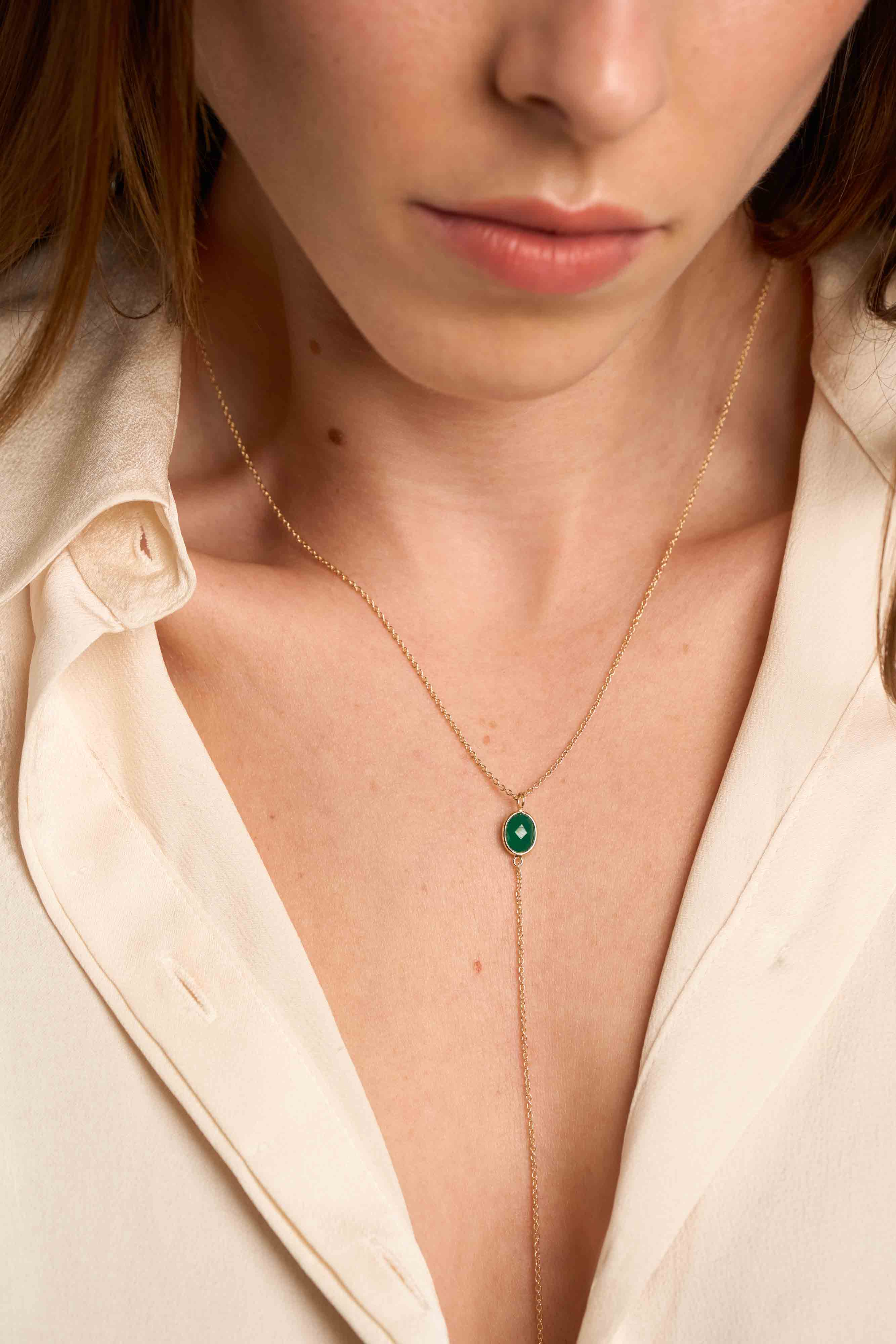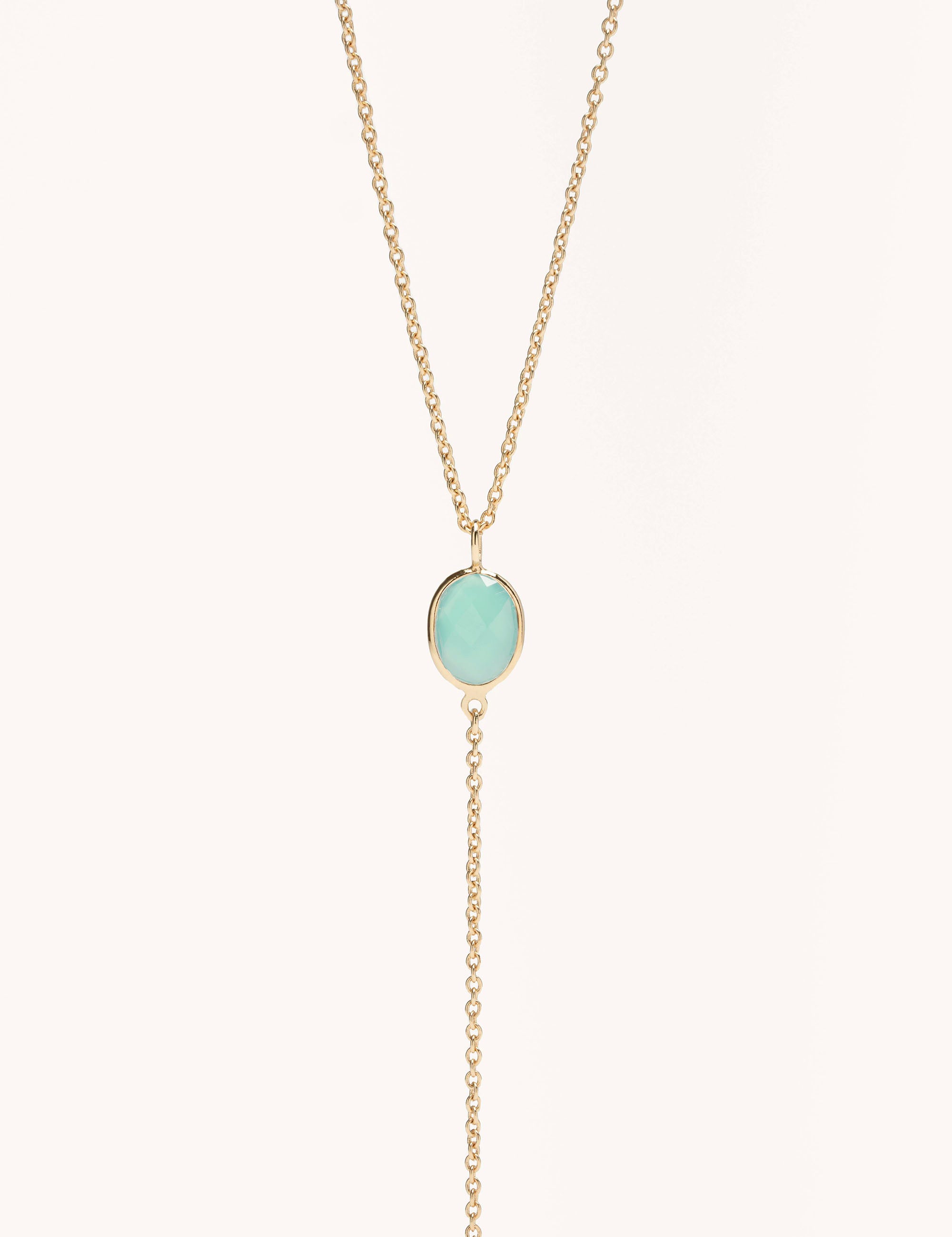 collier en forme de y, cravate, avec pierre fine et chaine. plaqué or 3 microns 750/1000. bijou fin et délicat. qualité minimaliste. orphée bijoux. labradorite, pierre de lune, amazonite, onyx noir, onyx vert