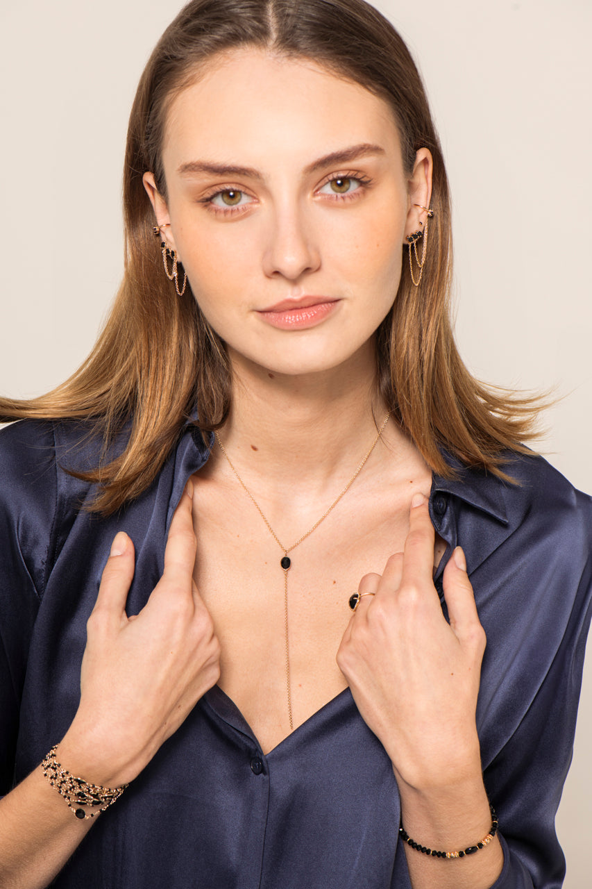 collier en forme de y, cravatte, avec pierre fine et chaine. plaqué or 3 microns 750/1000. bijou fin et délicat. qualité minimaliste. orphée bijoux. labradorite, pierre de lune, amazonite, onyx noir, onyx vert