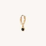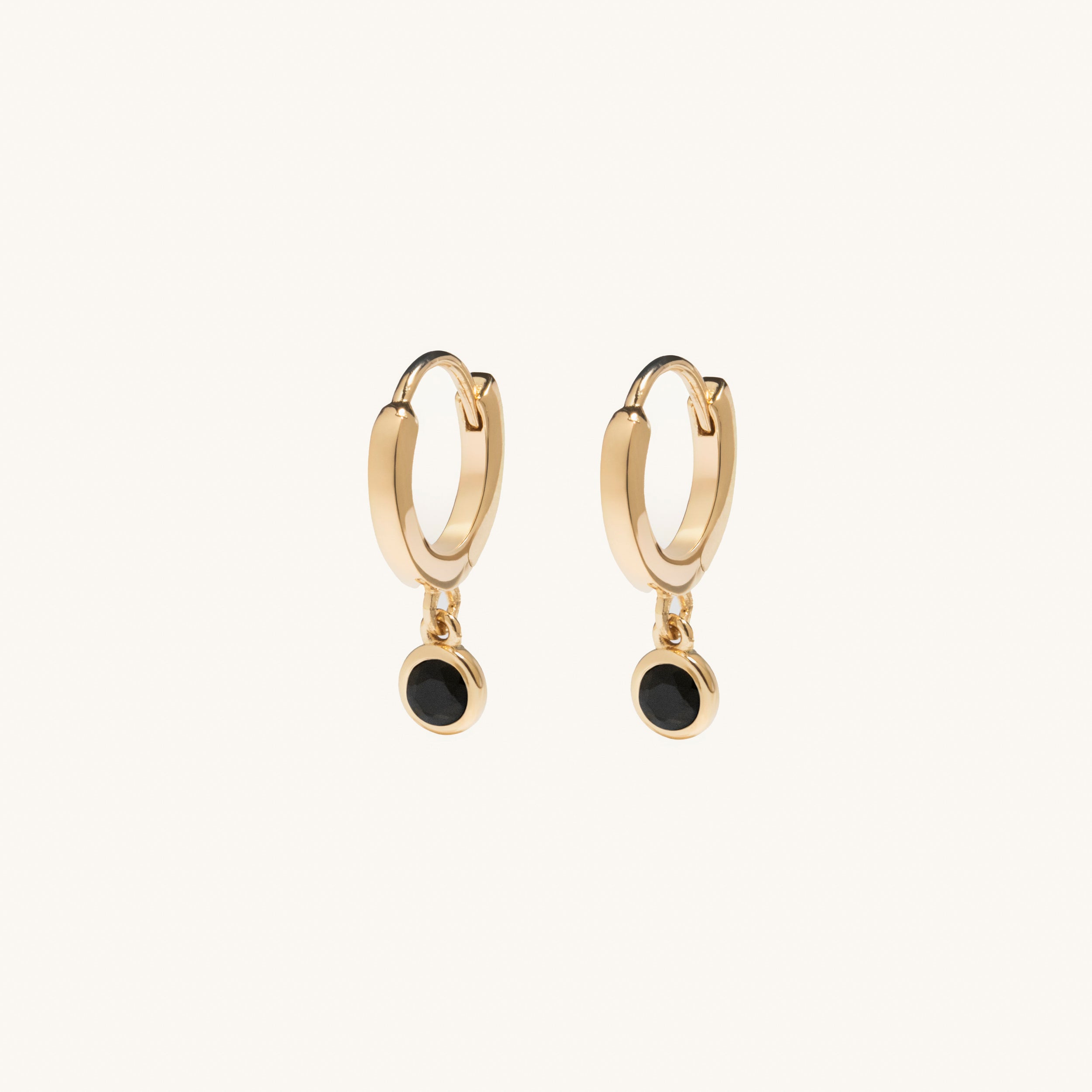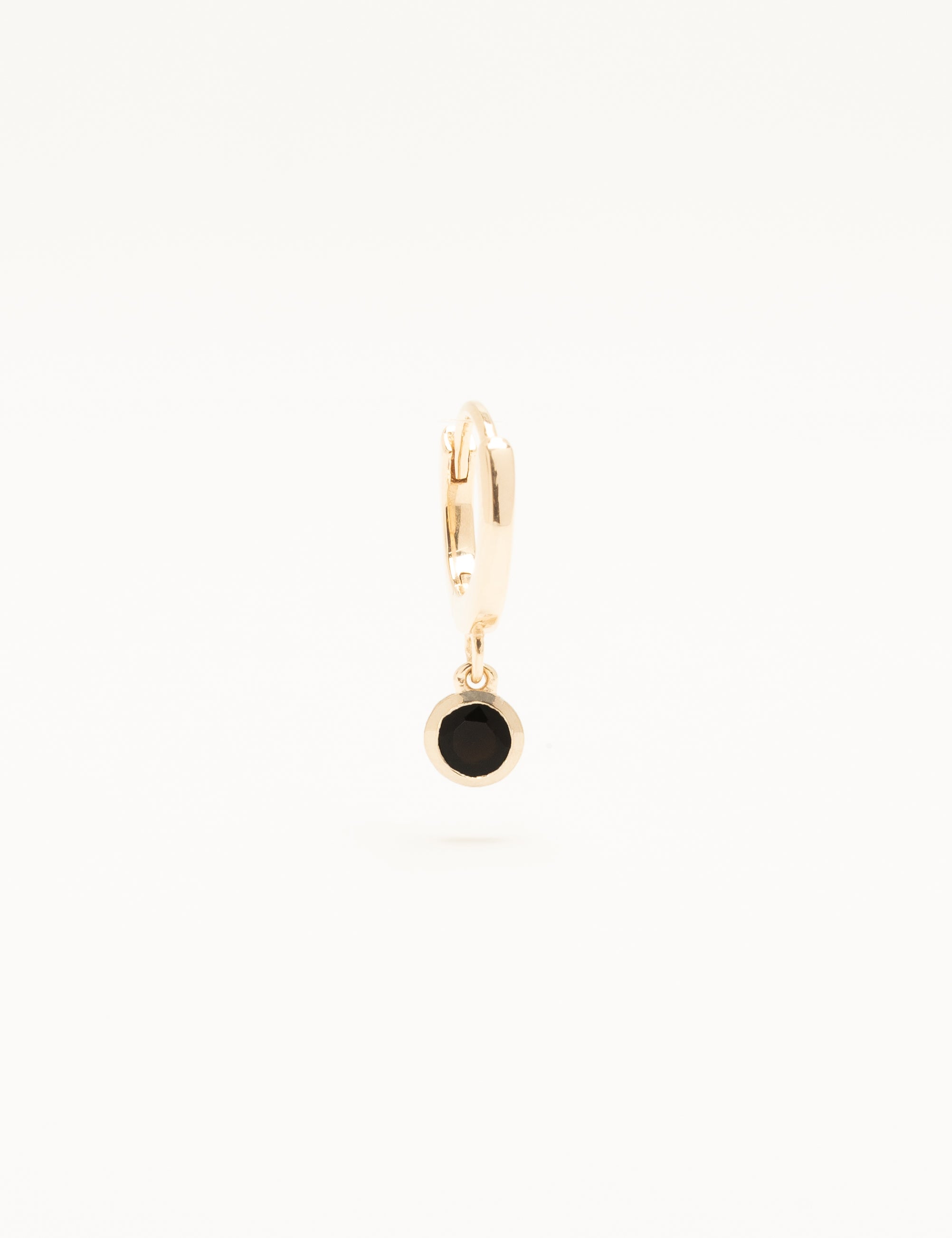 Orphée bijoux boucle d'oreille créole de 10 millimètres avec fermoir clicker, composée de délicates perles et couronnée d'une jolie mini pierre fine sertie en onyx noir. Cette créole est en plaqué or 3 microns 750/1000. À porter seule, en stacking ou en piercing à l'hélix