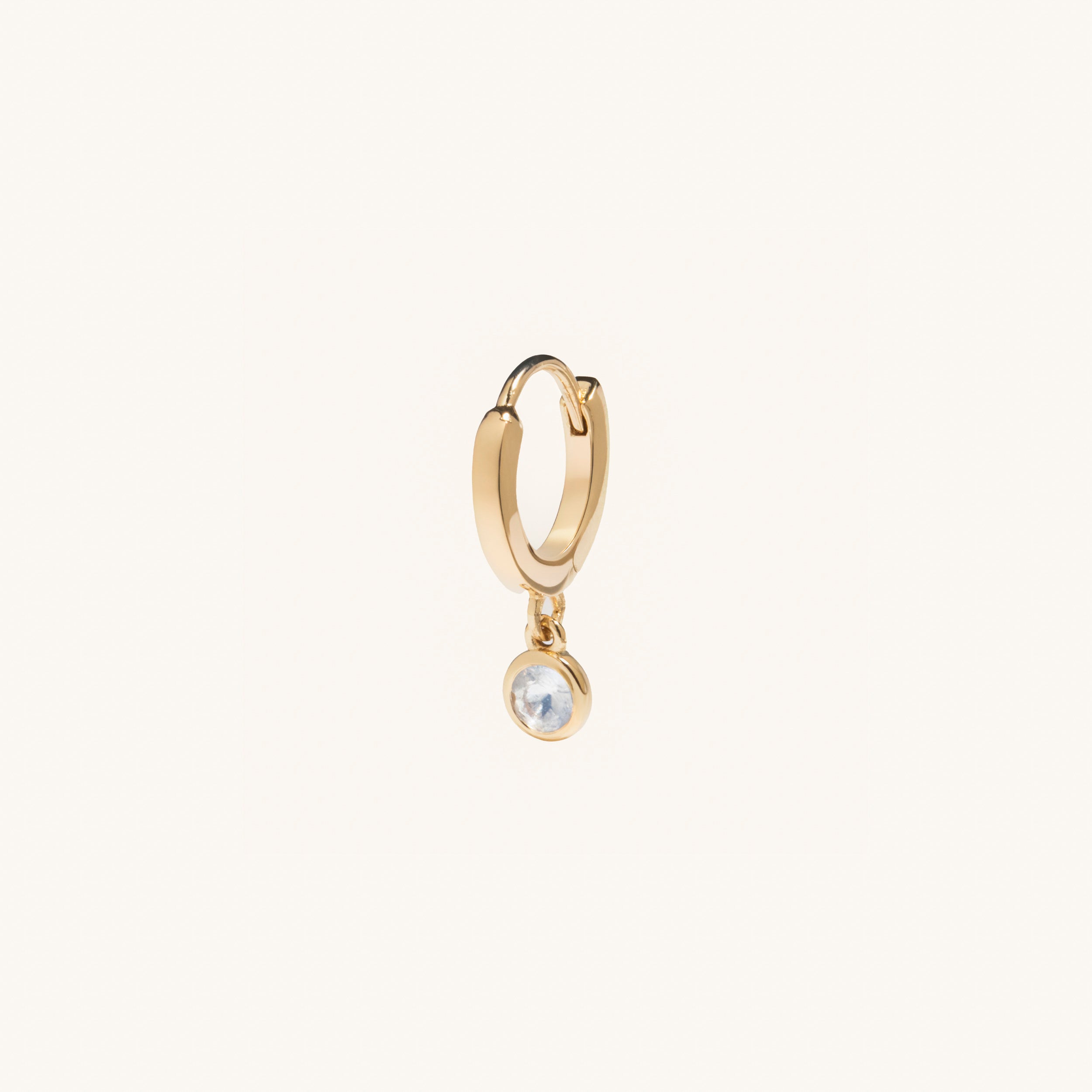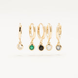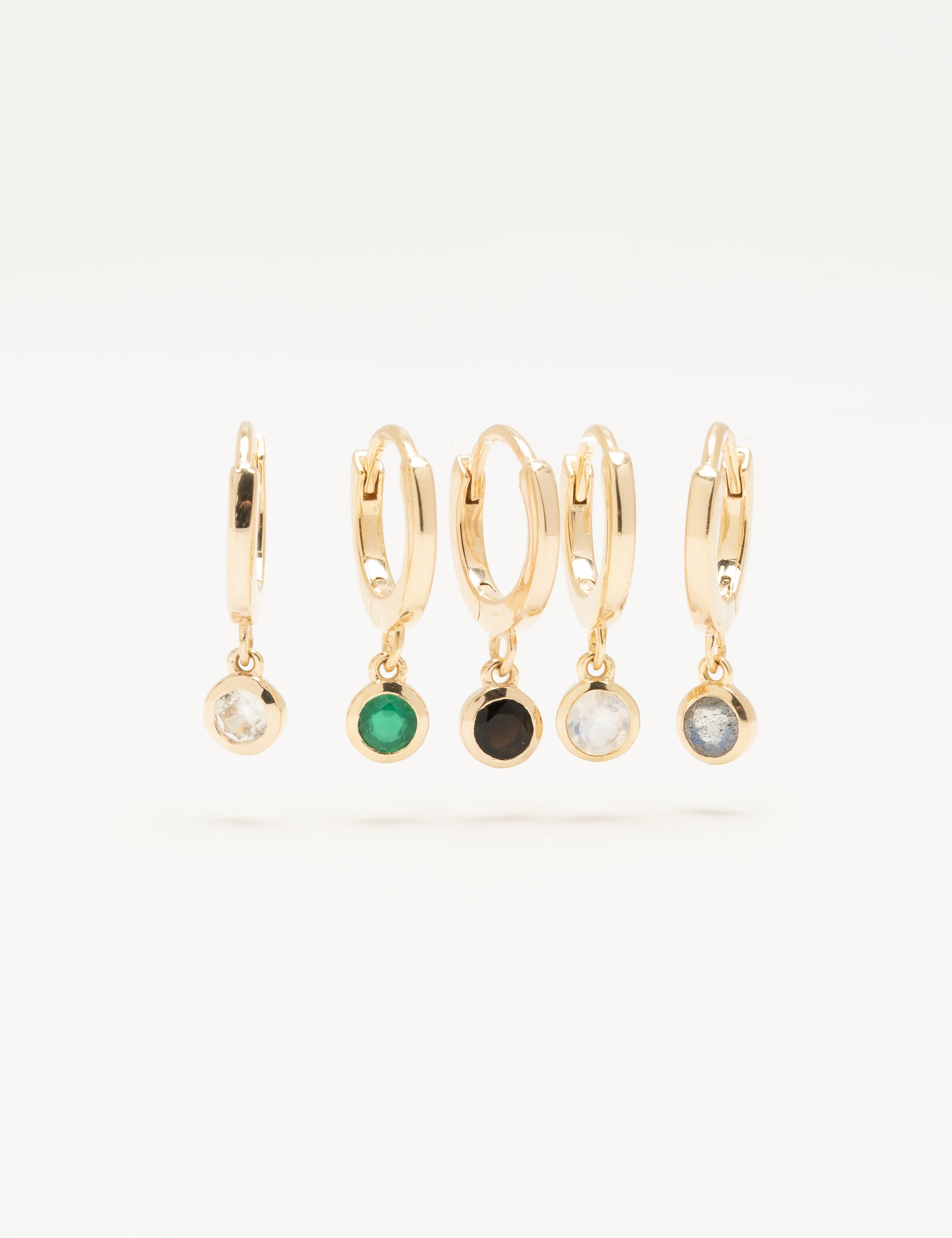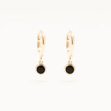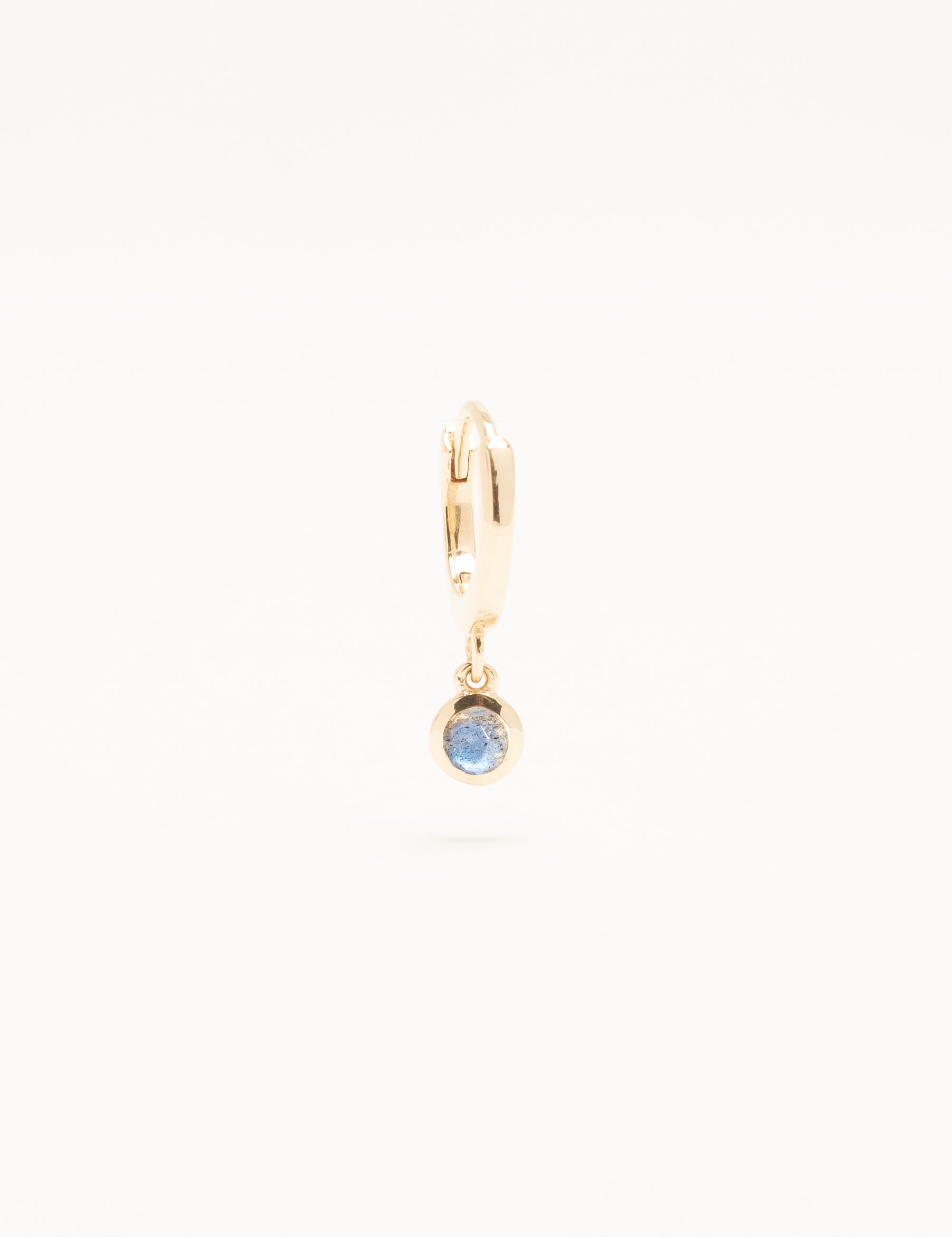 Orphée bijoux Boucle d'oreille créole avec fermoir clicker sertie d'une pierre fine de 3 mm de diamètre en différentes teintes : labradorite, onyx noir, onyx vert, pierre de lune et zircon blanc naturel. Elle est en plaqué or 3 microns 750/1000 et peut se porter seule, à la paire ou en stacking. C'est un must have minimaliste et élégant