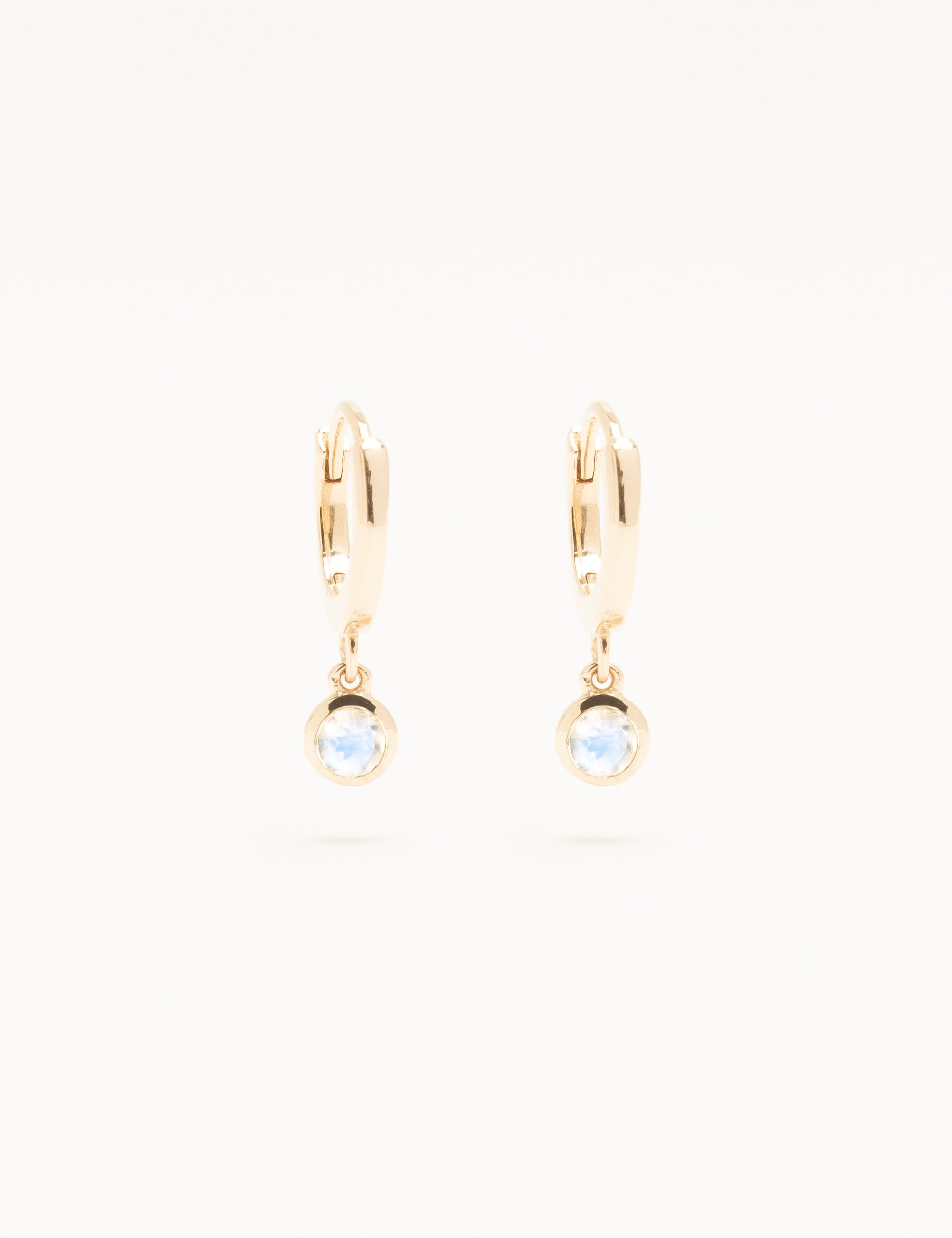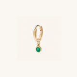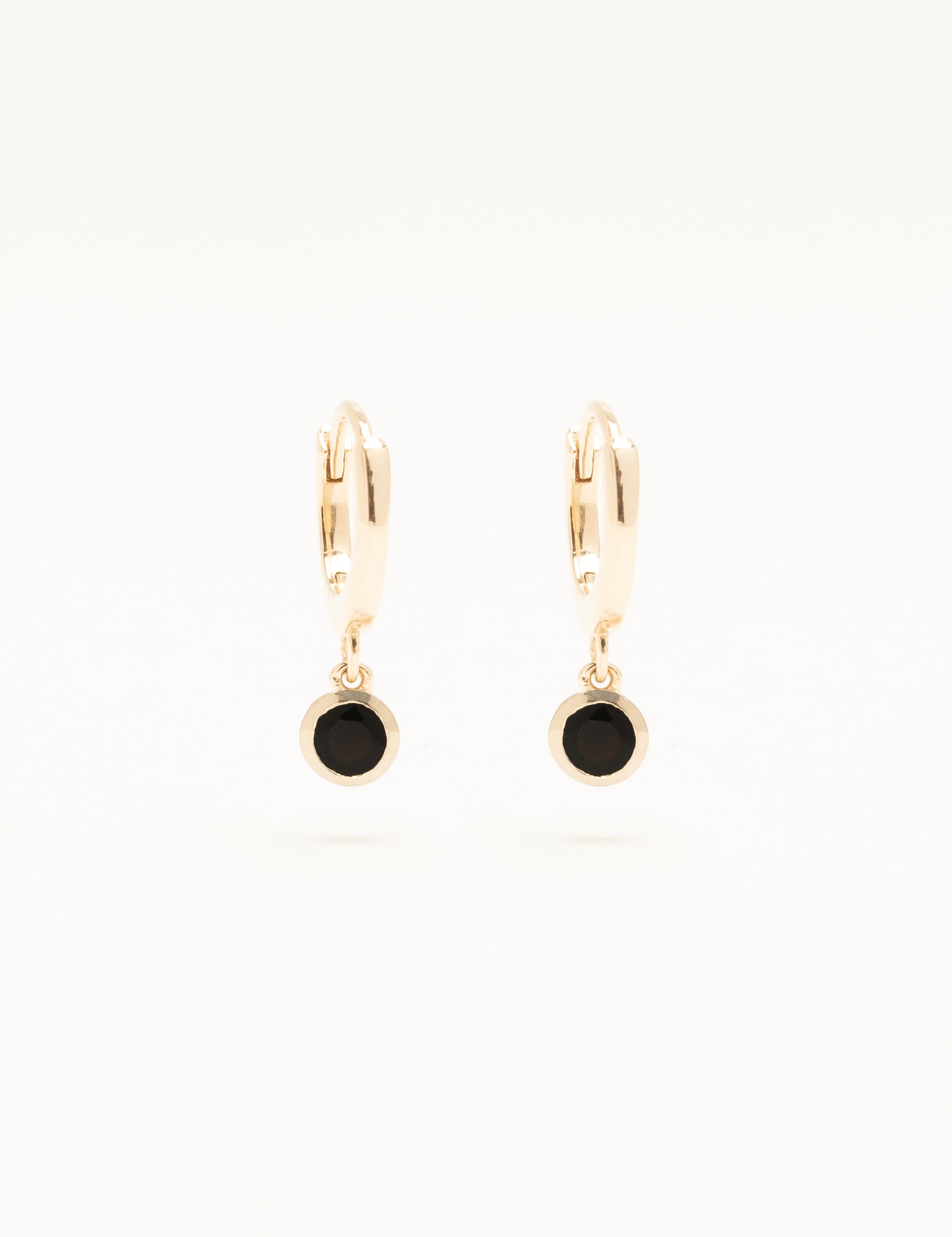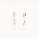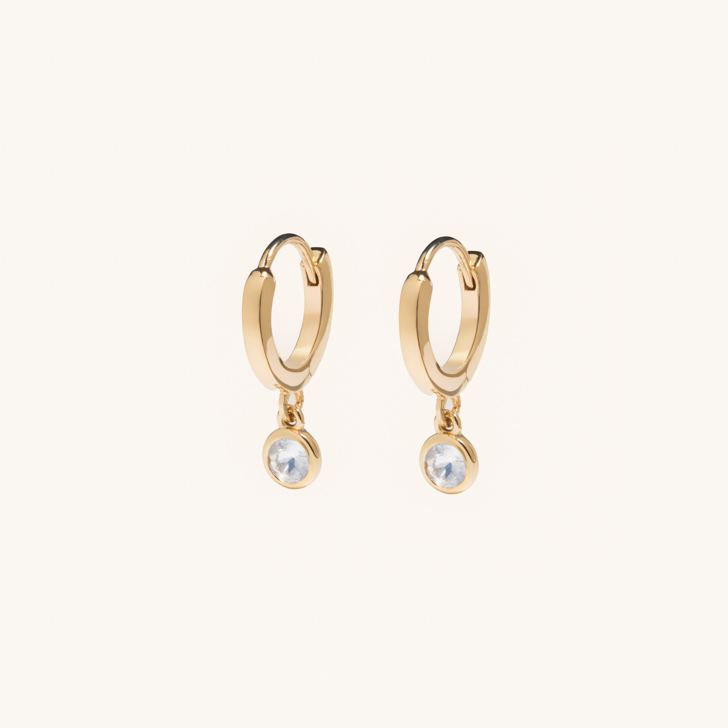 Orphée bijoux Boucle d'oreille créole avec fermoir clicker sertie d'une pierre fine de 3 mm de diamètre en différentes teintes : labradorite, onyx noir, onyx vert, pierre de lune et zircon blanc naturel. Elle est en plaqué or 3 microns 750/1000 et peut se porter seule, à la paire ou en stacking. C'est un must have minimaliste et élégant