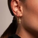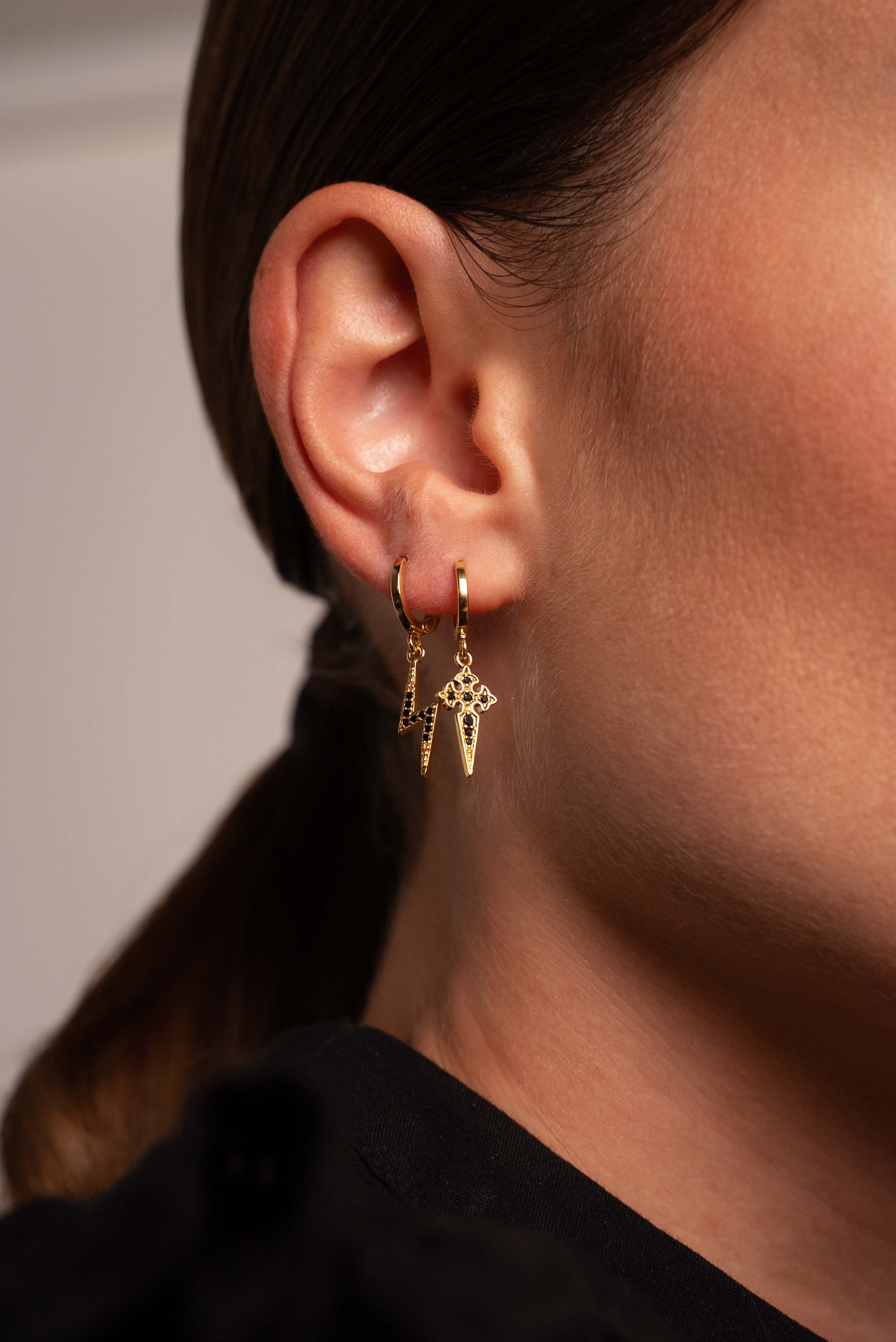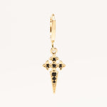 Orphée bijoux Boucle d'oreille créole  à fermoir clicker composée d'un pendentif en forme de croix au style baroque sertie de plusieurs oxydes de zirconiums noirs, le tout en plaqué or 3 microns 750/1000