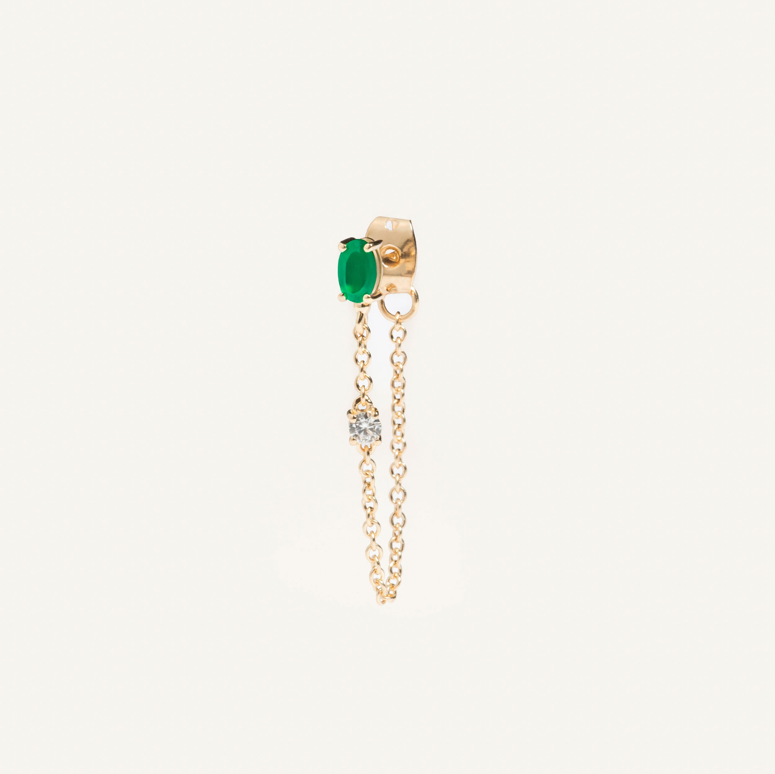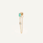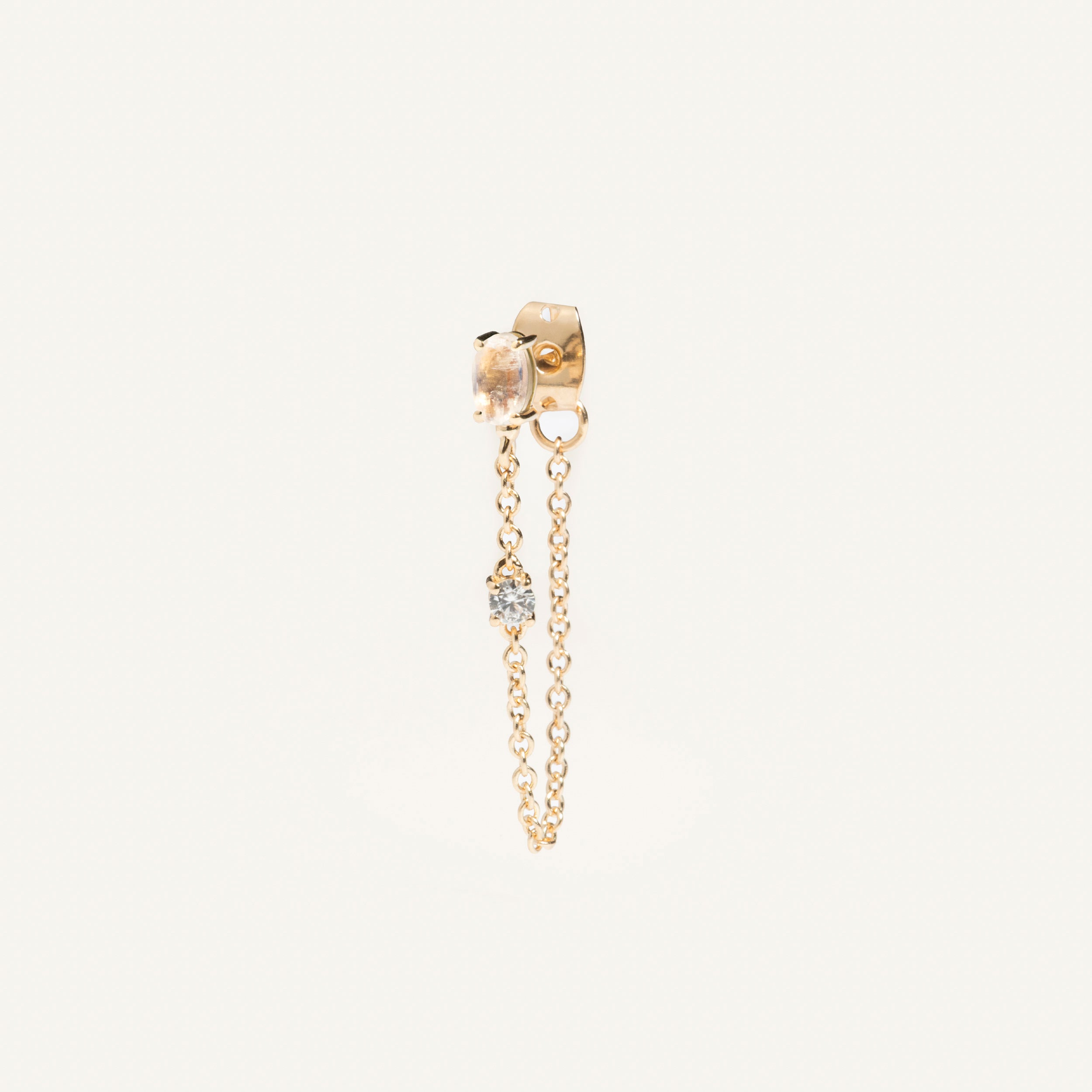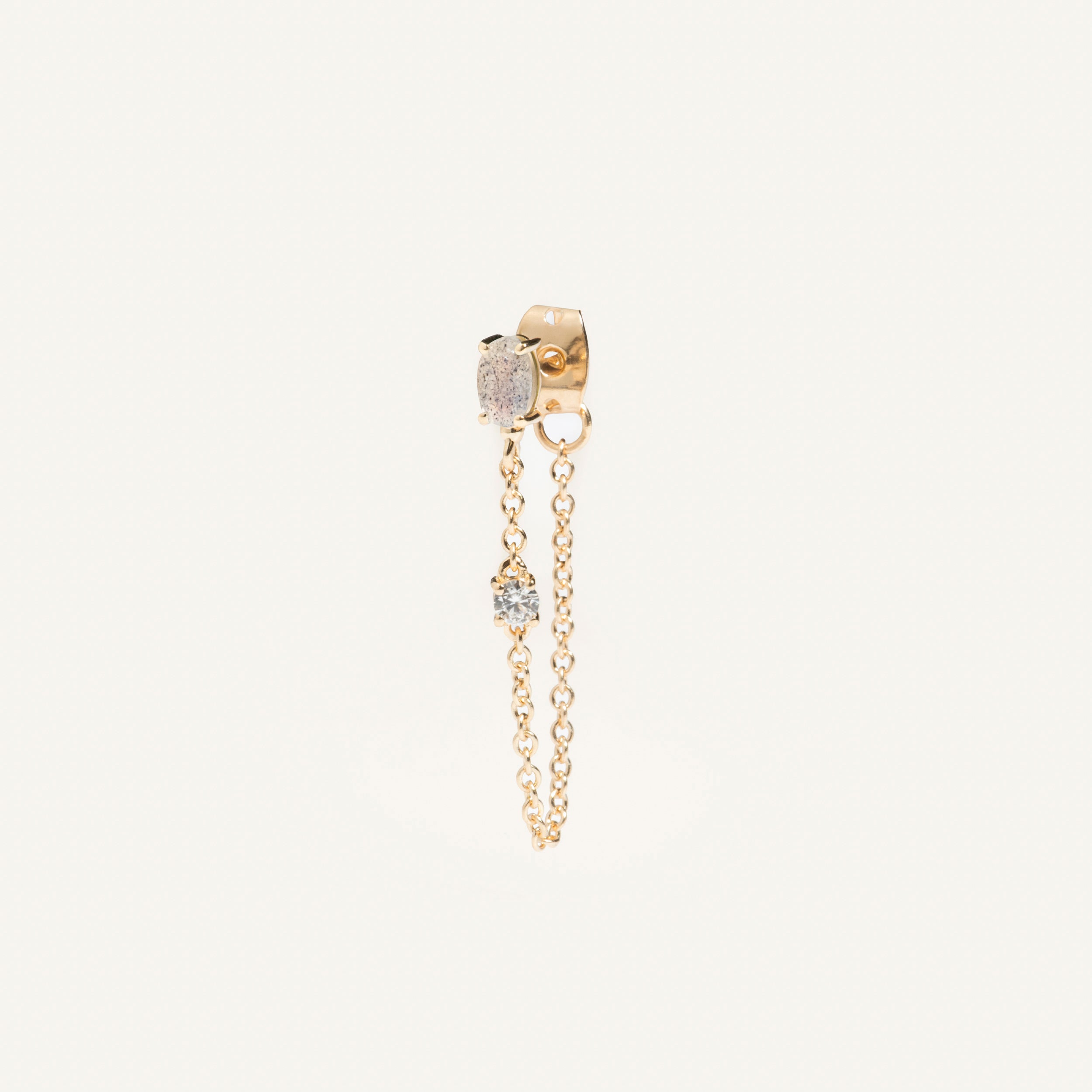 Découvrez la délicate Charlotte, notre puce chaîne qui allie élégance et originalité. D'abord une pierre fine ovale et joyeuse sur le lobe, puis sa fine chaîne surmontée d'un zircon naturel, qui est reliée au fermoir, Charlotte sera la touche poétique de votre style. Sa longueur est de 2,5 cm, elle est donc très facile à porter.