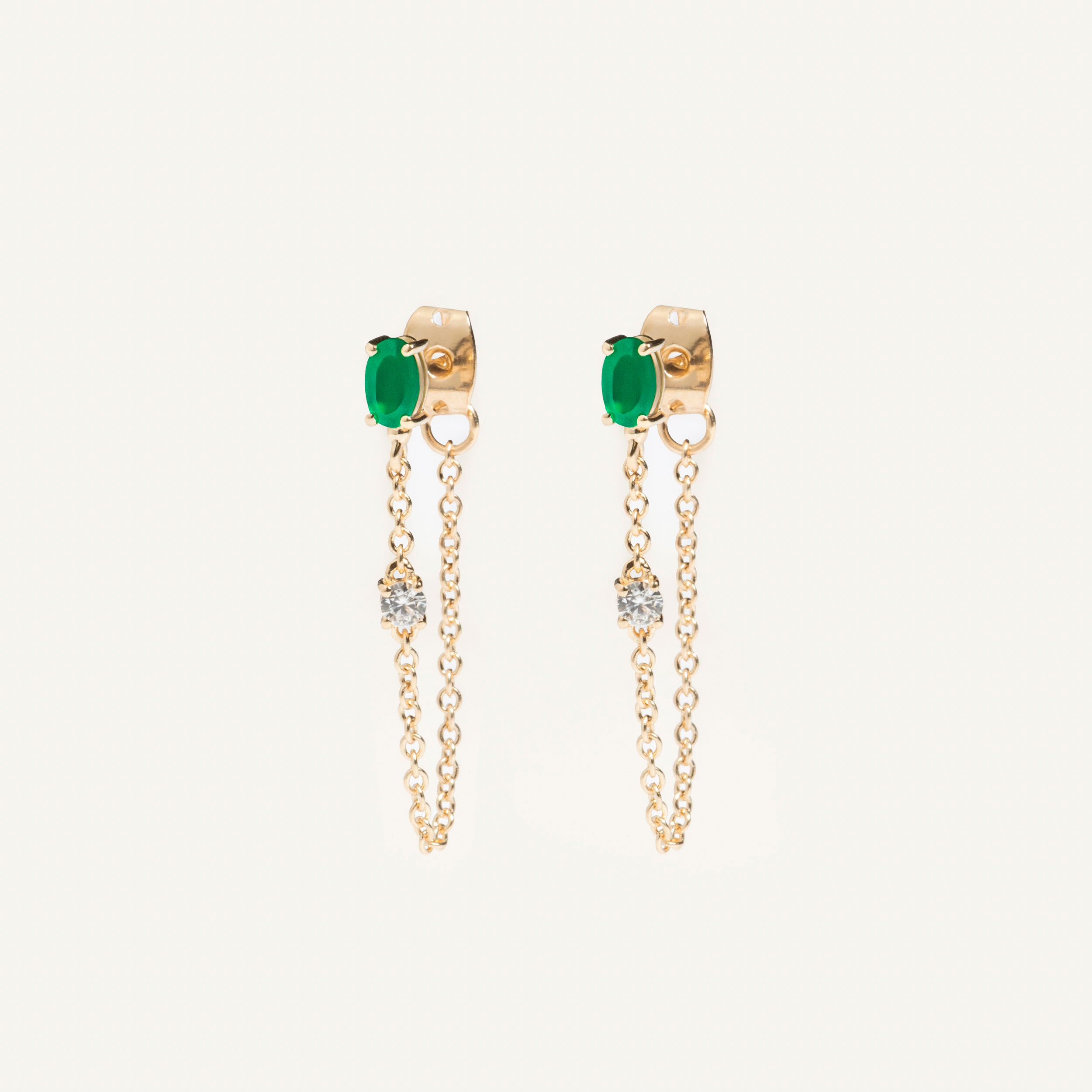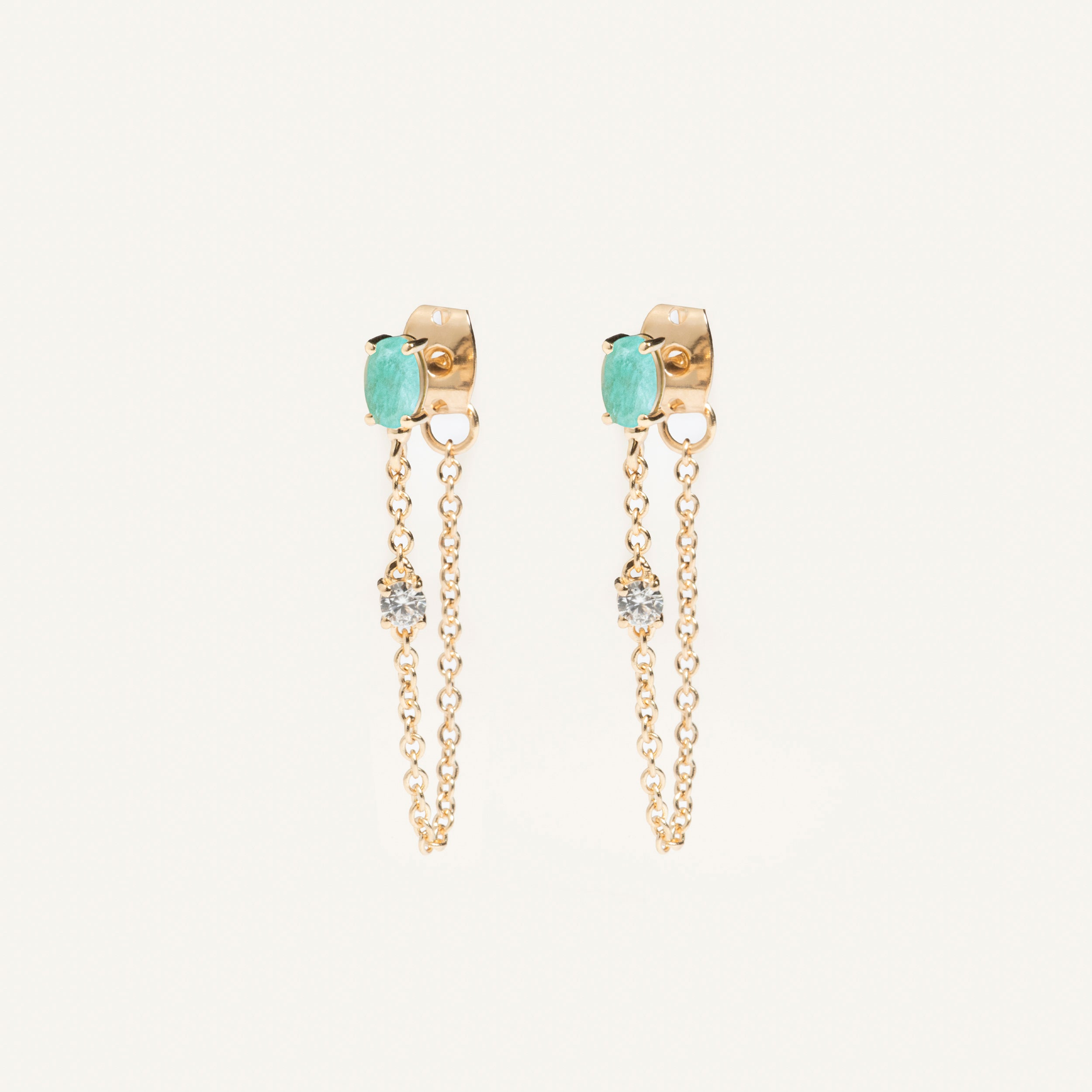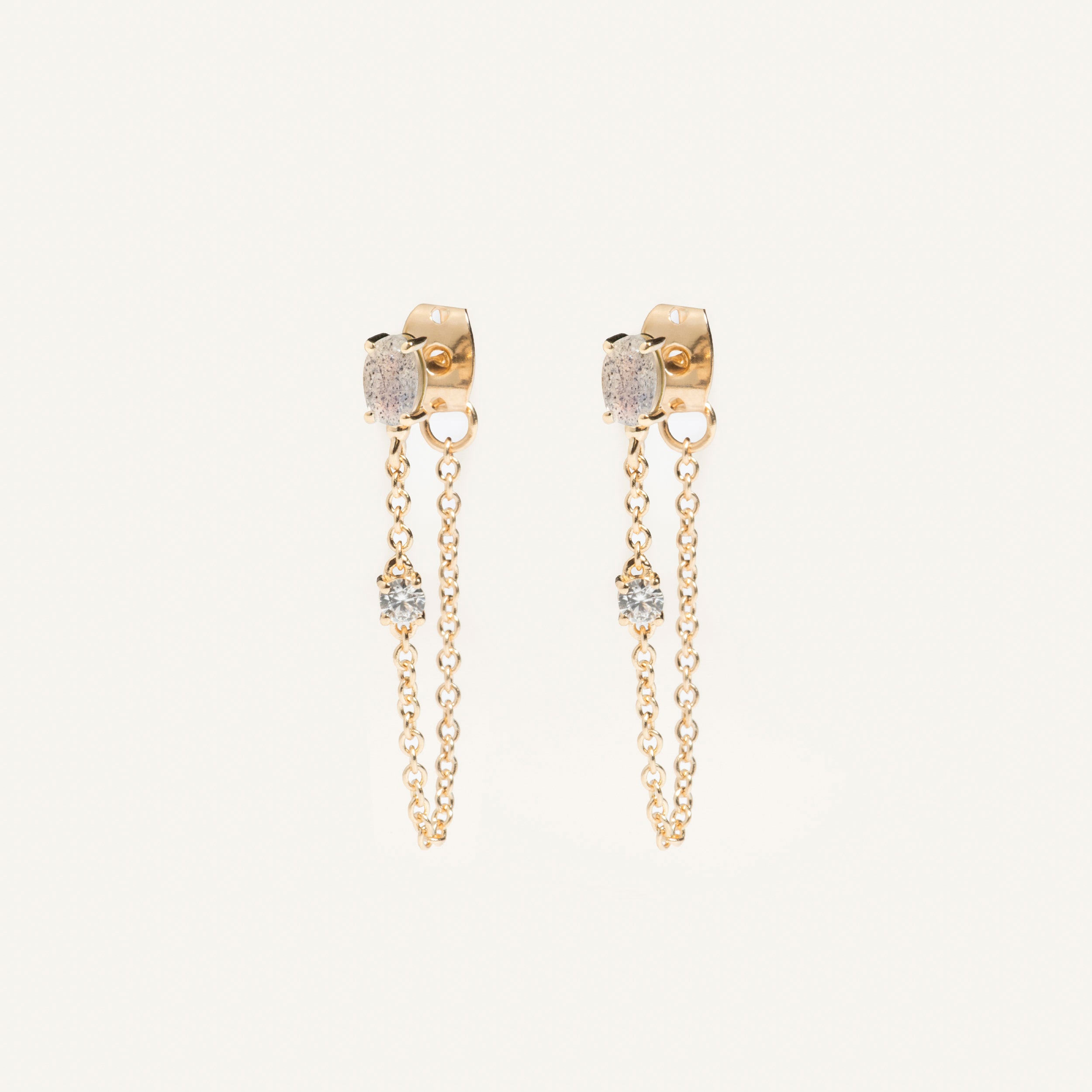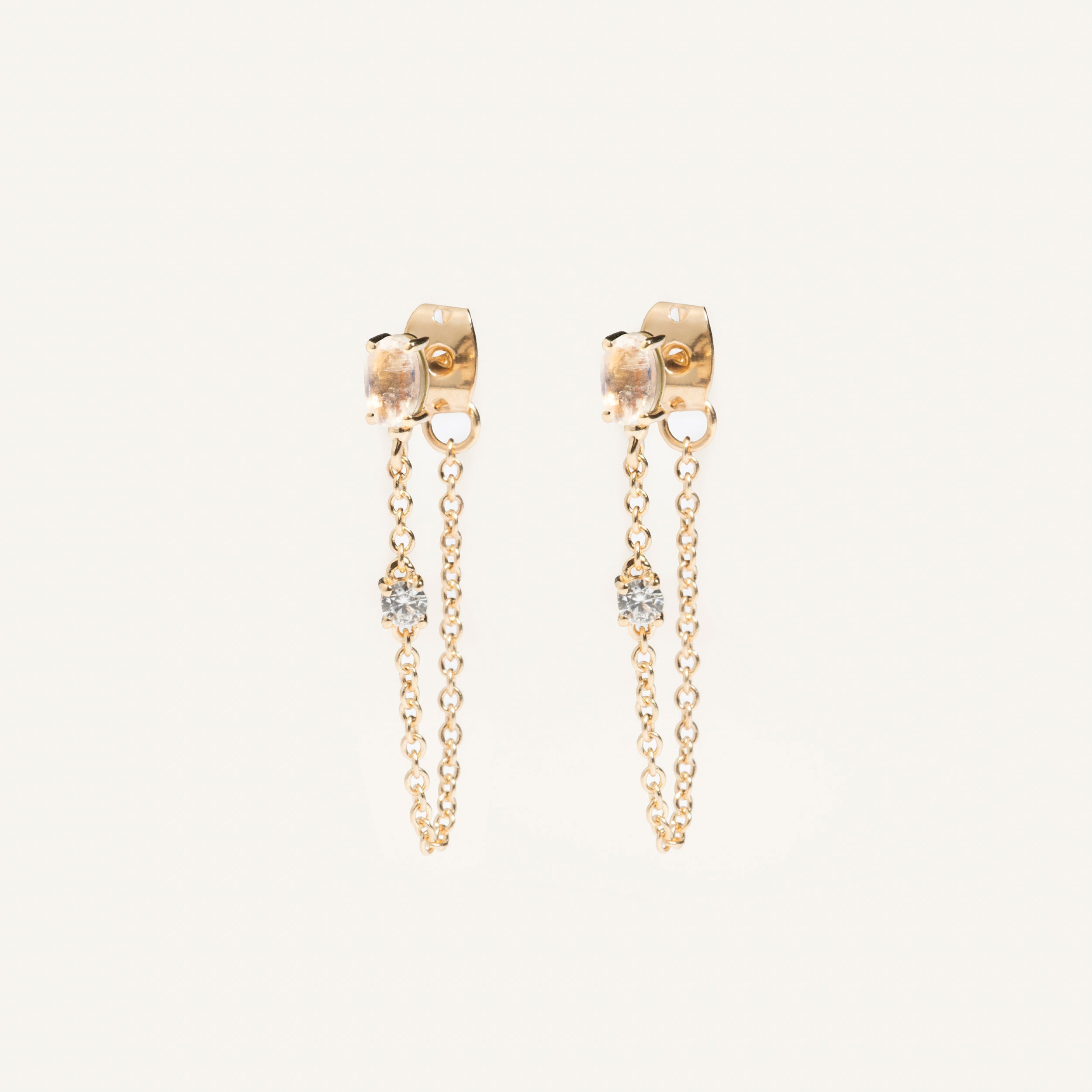 Découvrez la délicate Charlotte, notre puce chaîne qui allie élégance et originalité. D'abord une pierre fine ovale et joyeuse sur le lobe, puis sa fine chaîne surmontée d'un zircon naturel, qui est reliée au fermoir, Charlotte sera la touche poétique de votre style. Sa longueur est de 2,5 cm, elle est donc très facile à porter.